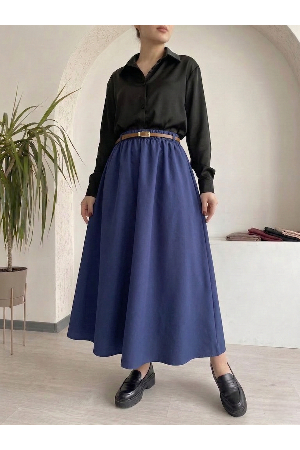 Kemer Detay Terikoton Etek-Lacivert