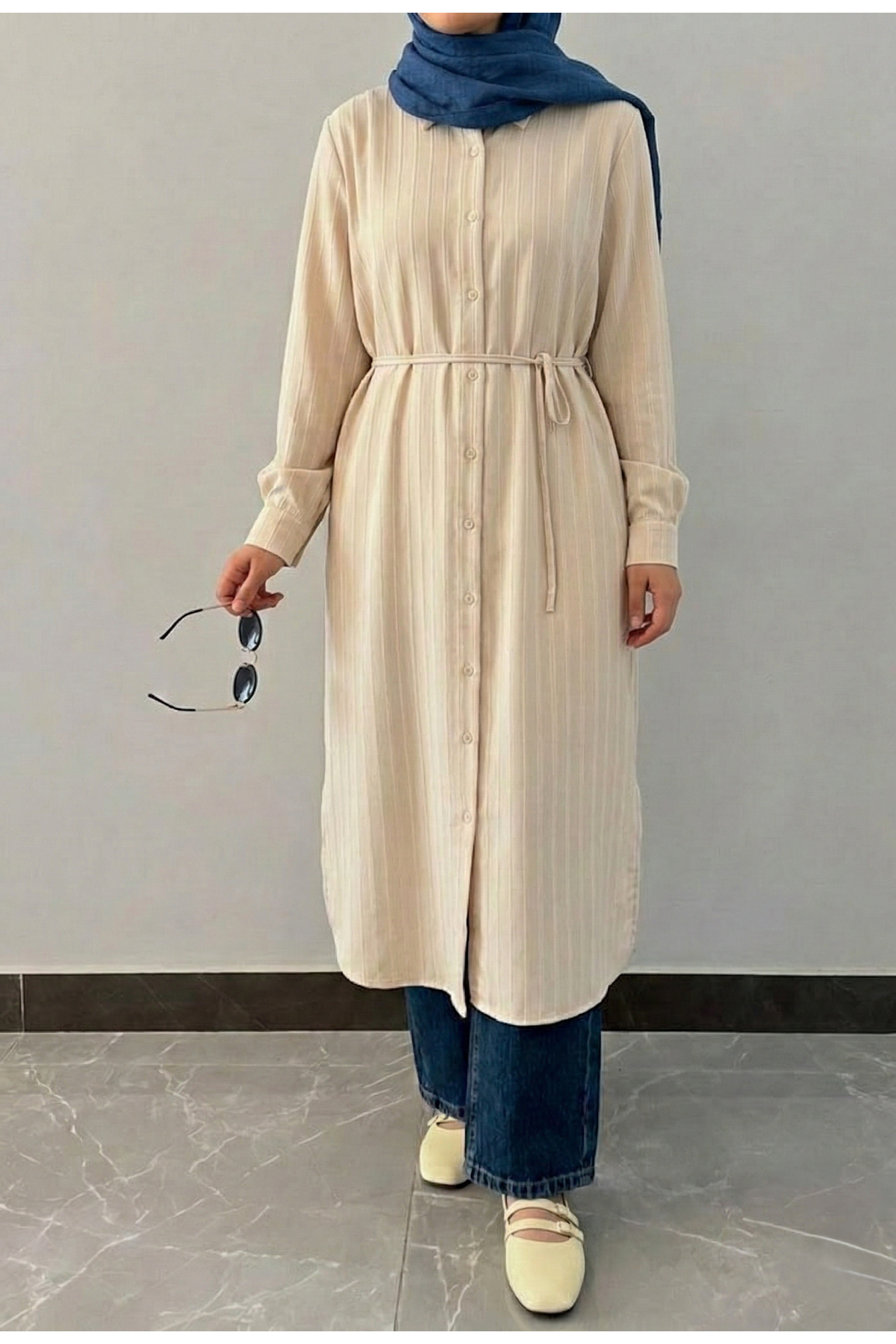 Kendinden Çizgili Uzun Tunik