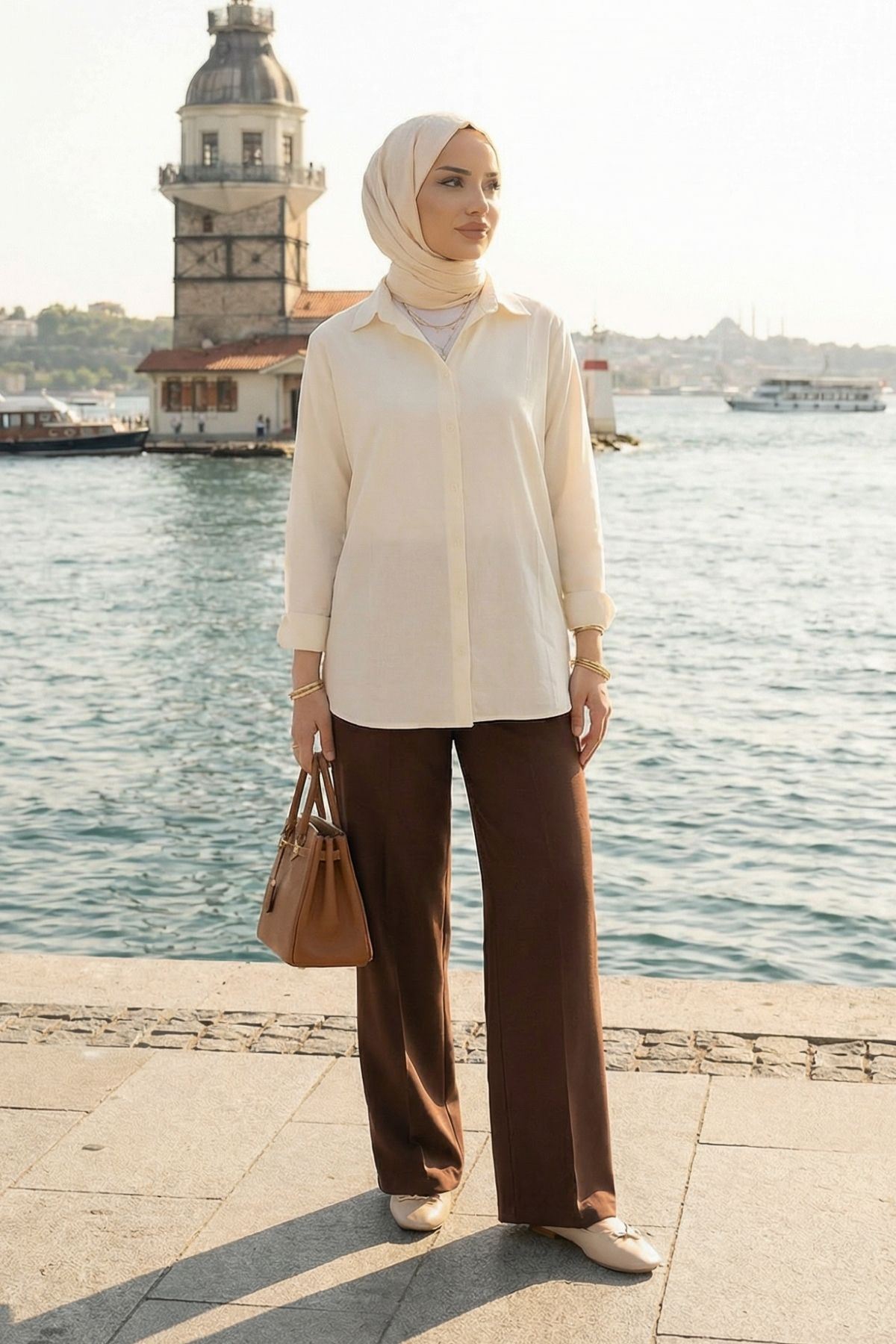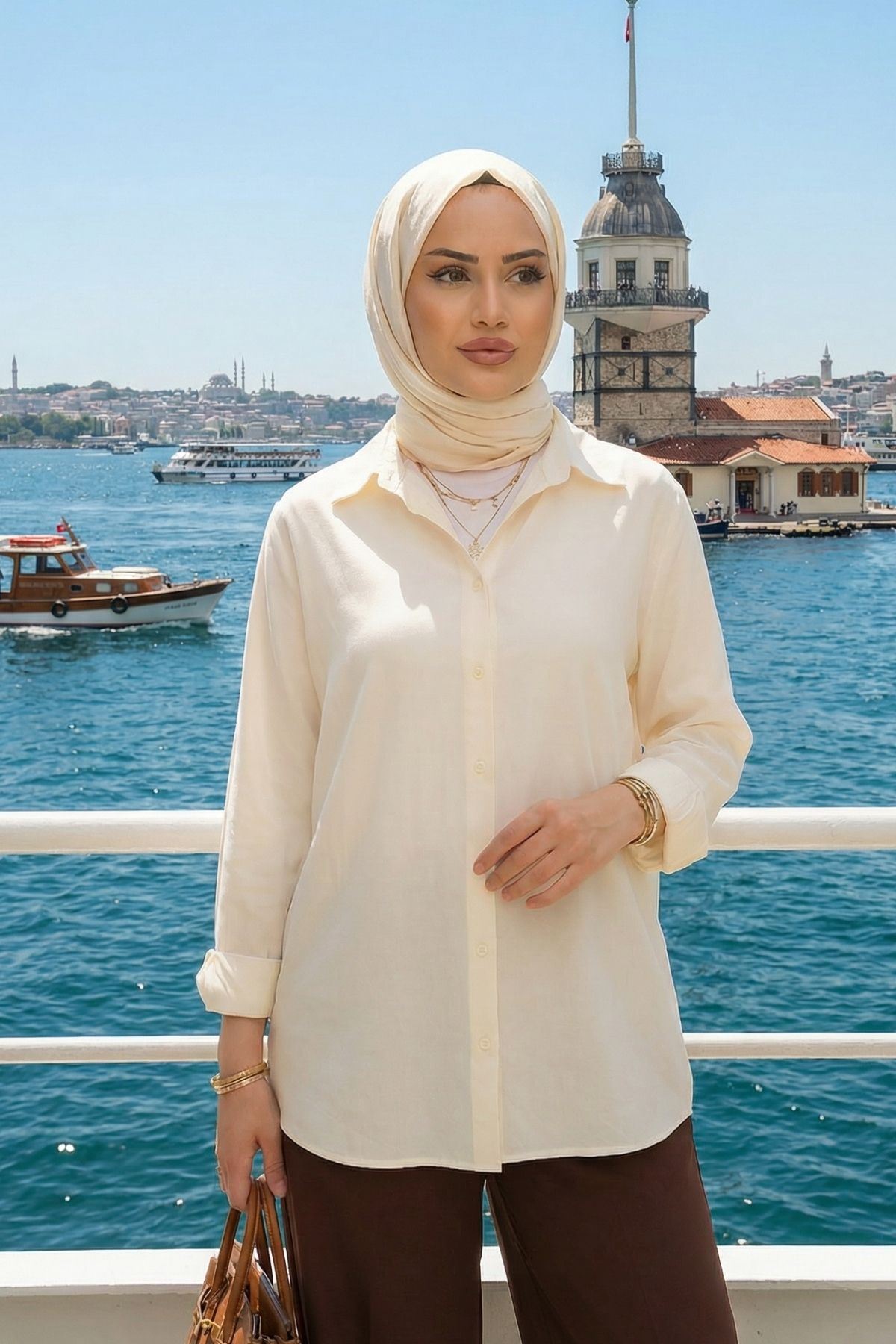 tesettür gömlek, kadın oversize gömlek, uzun gömlek kadın, ekru gömlek, yazlık gömlek, salaş gömlek, keten gömlek kadın, basic gömlek, tunik gömlek