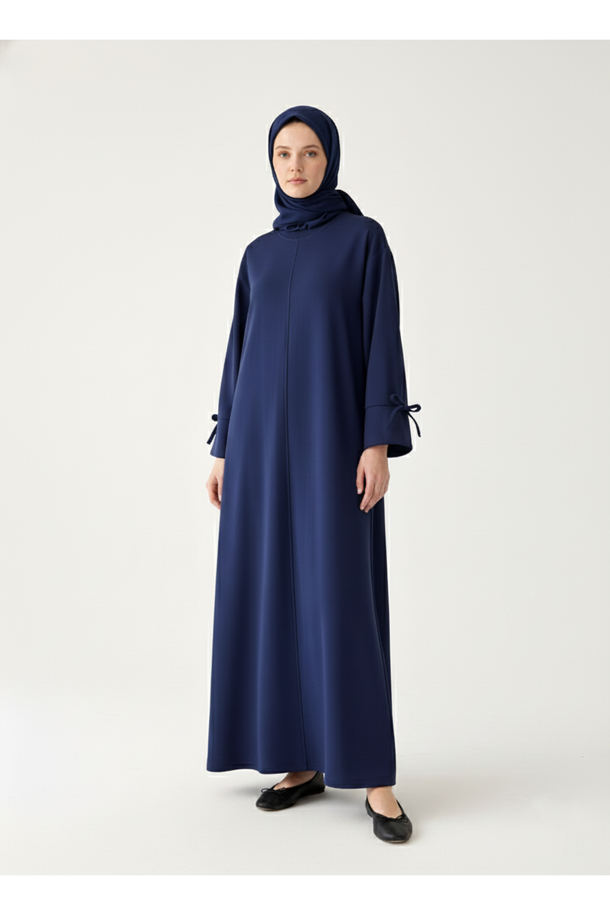 Kol Biye Detay Elbise-Lacivert