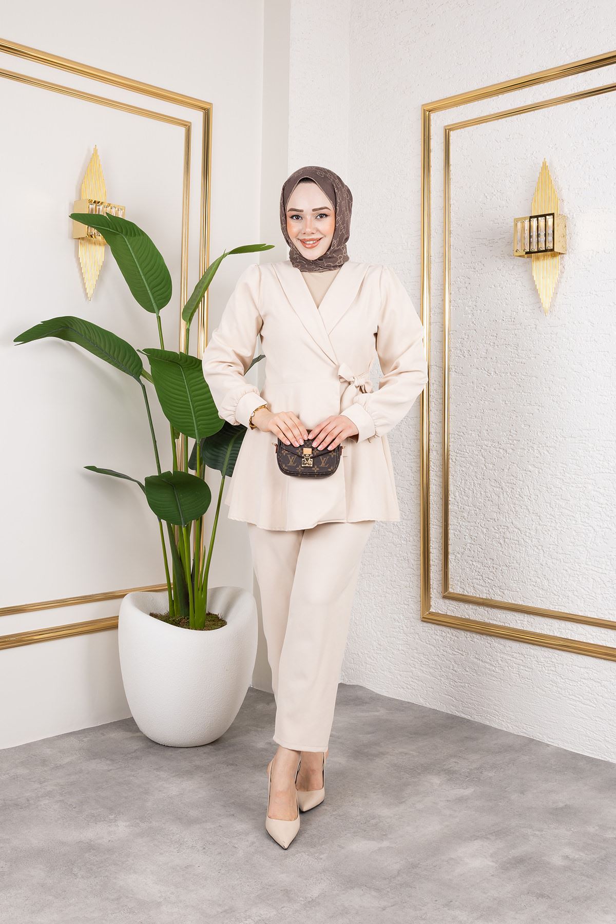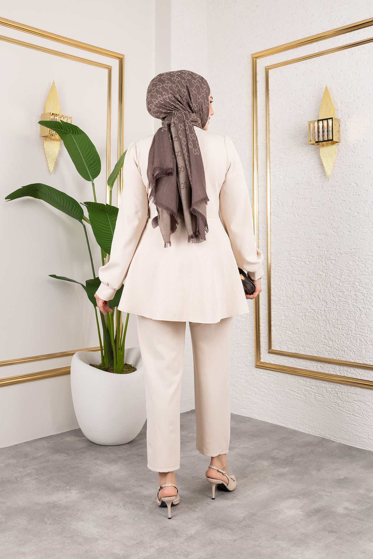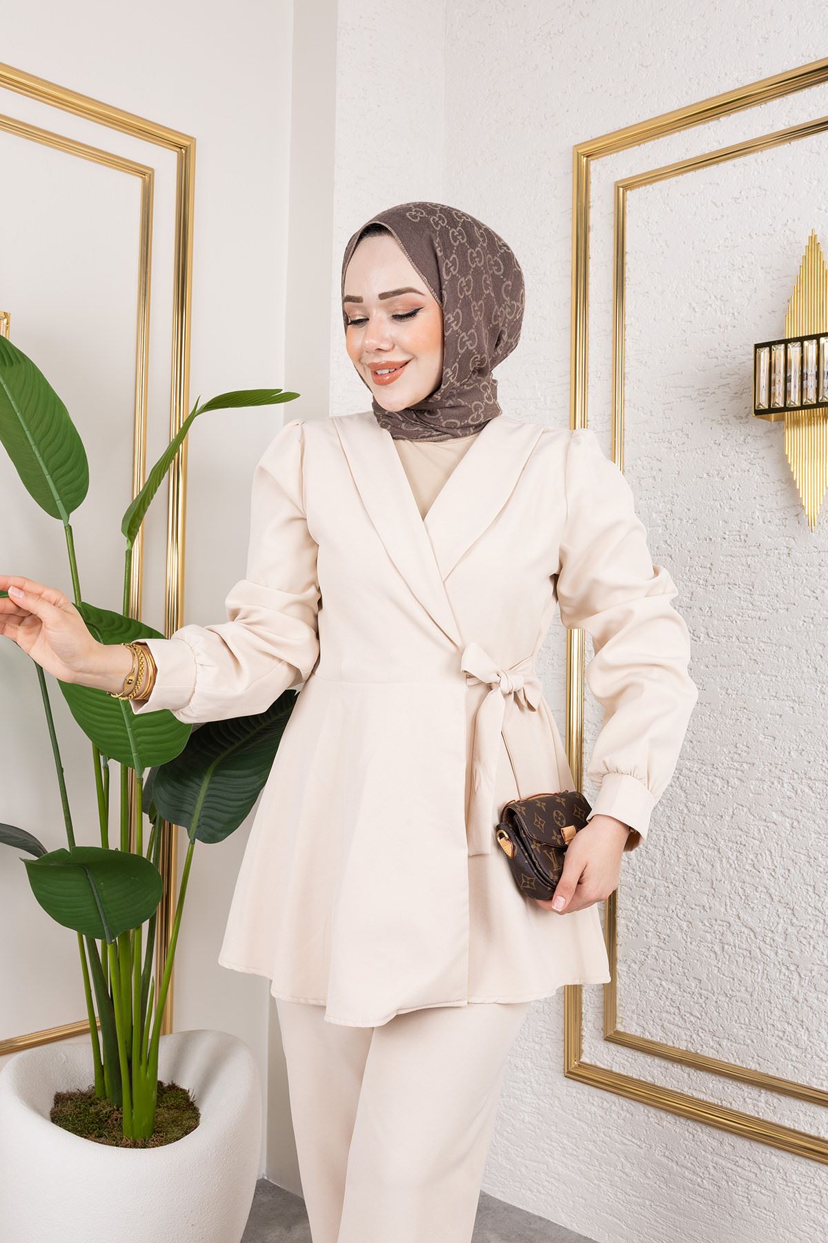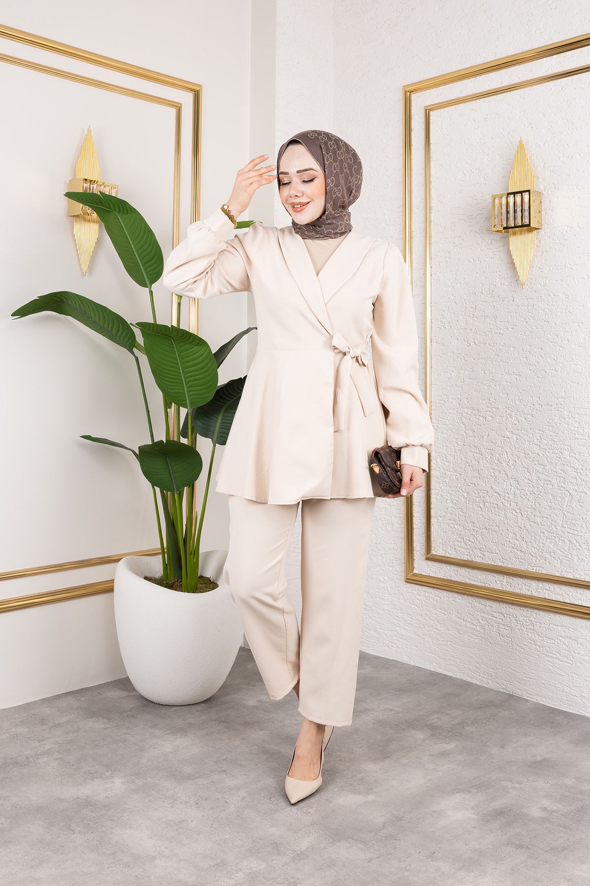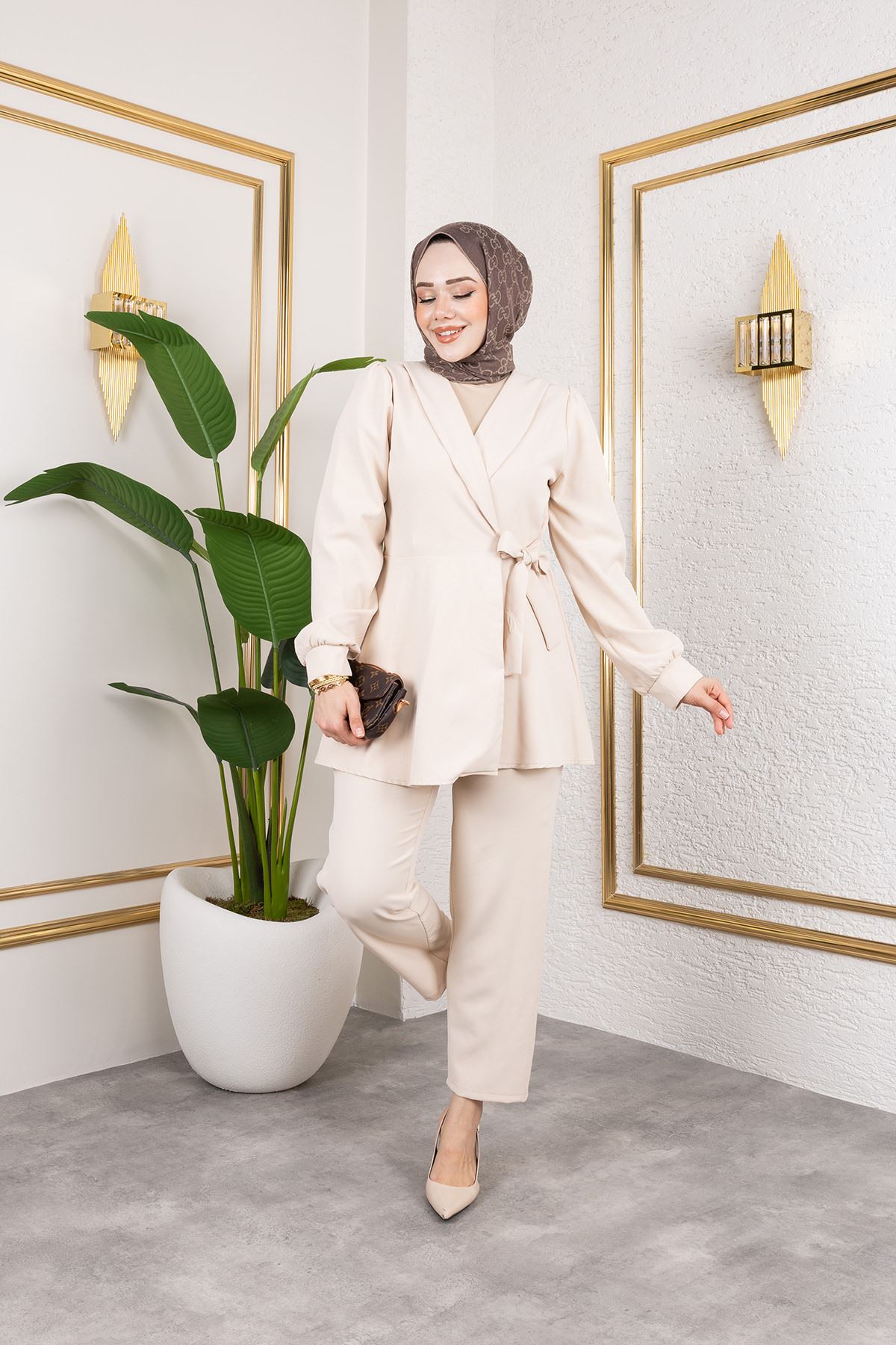 Kuşak Detay Ceketli Takım