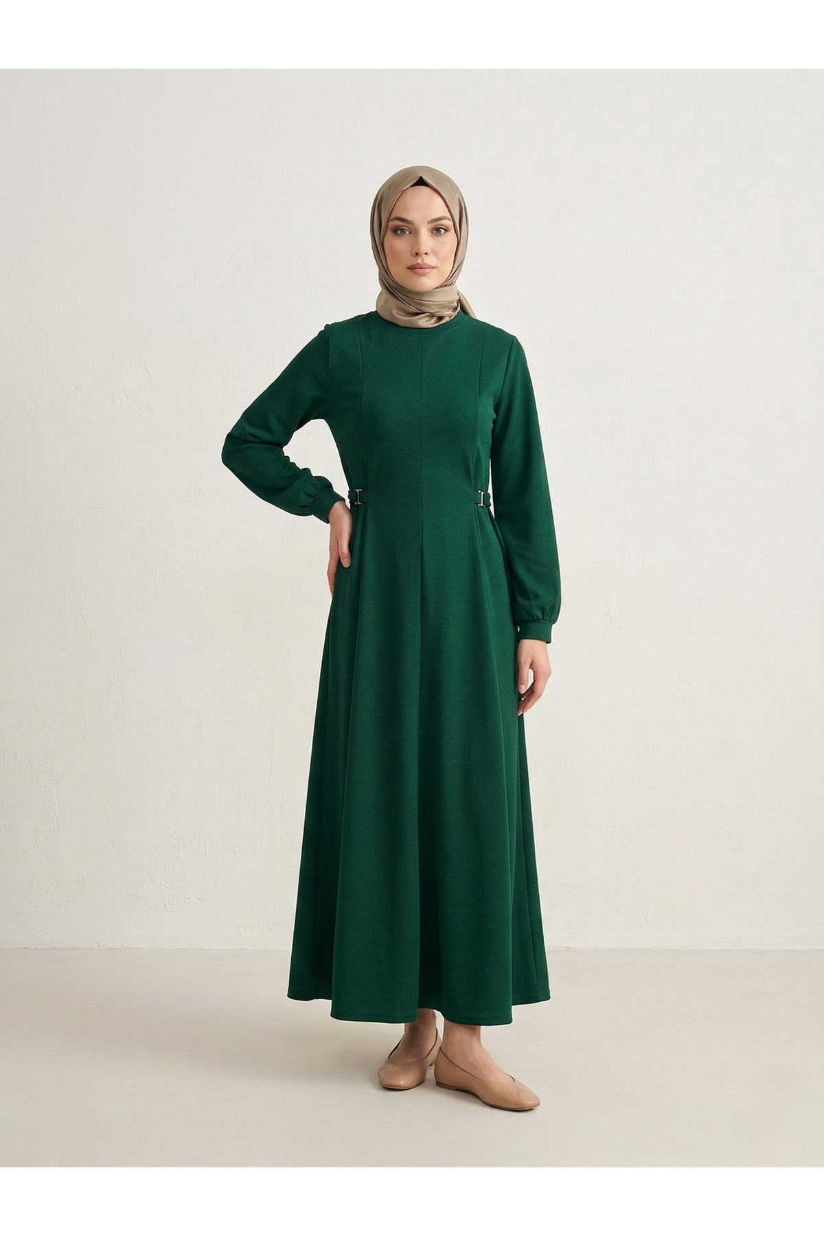 Kuşak Toka Detay Elbise-Zümrüt Yeşili