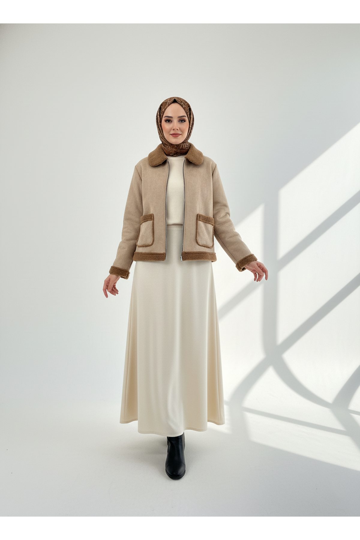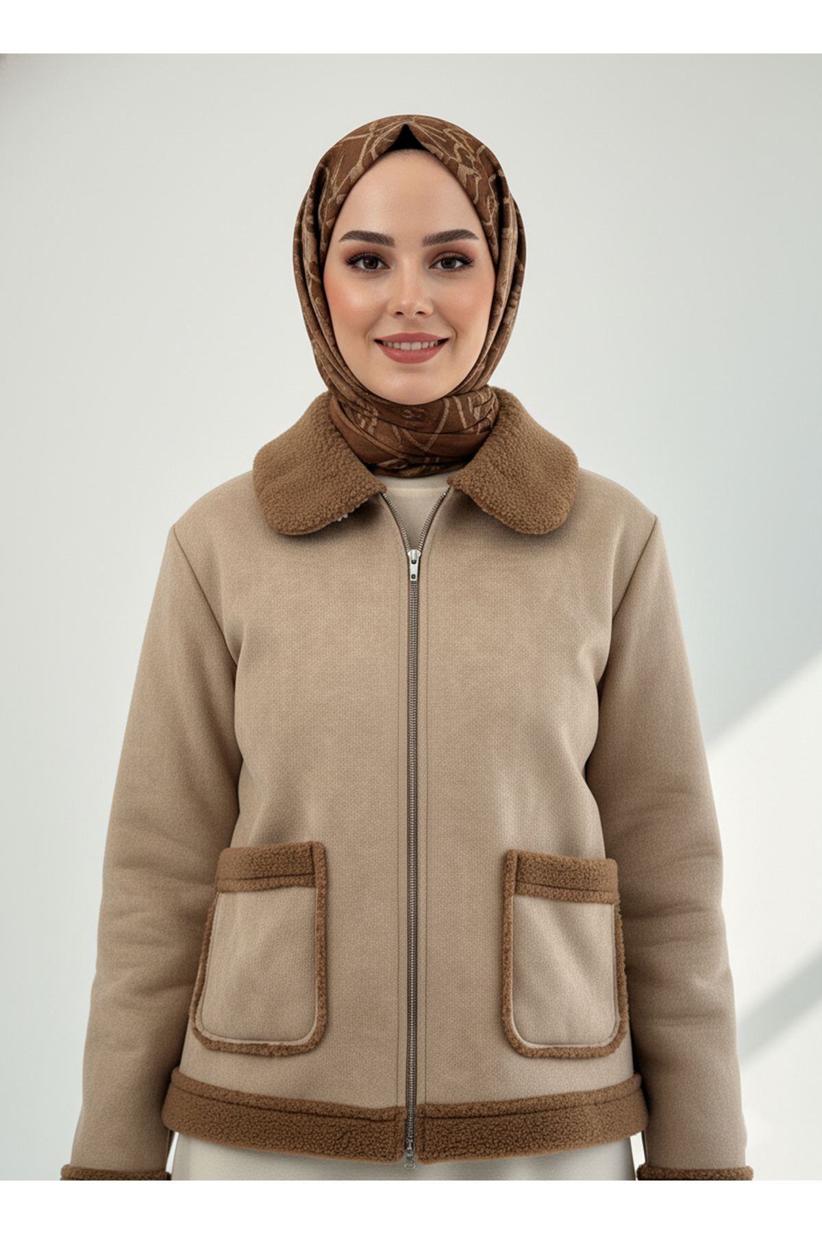 Metal Fermuar Detaylı Üstten Cepli Kaban