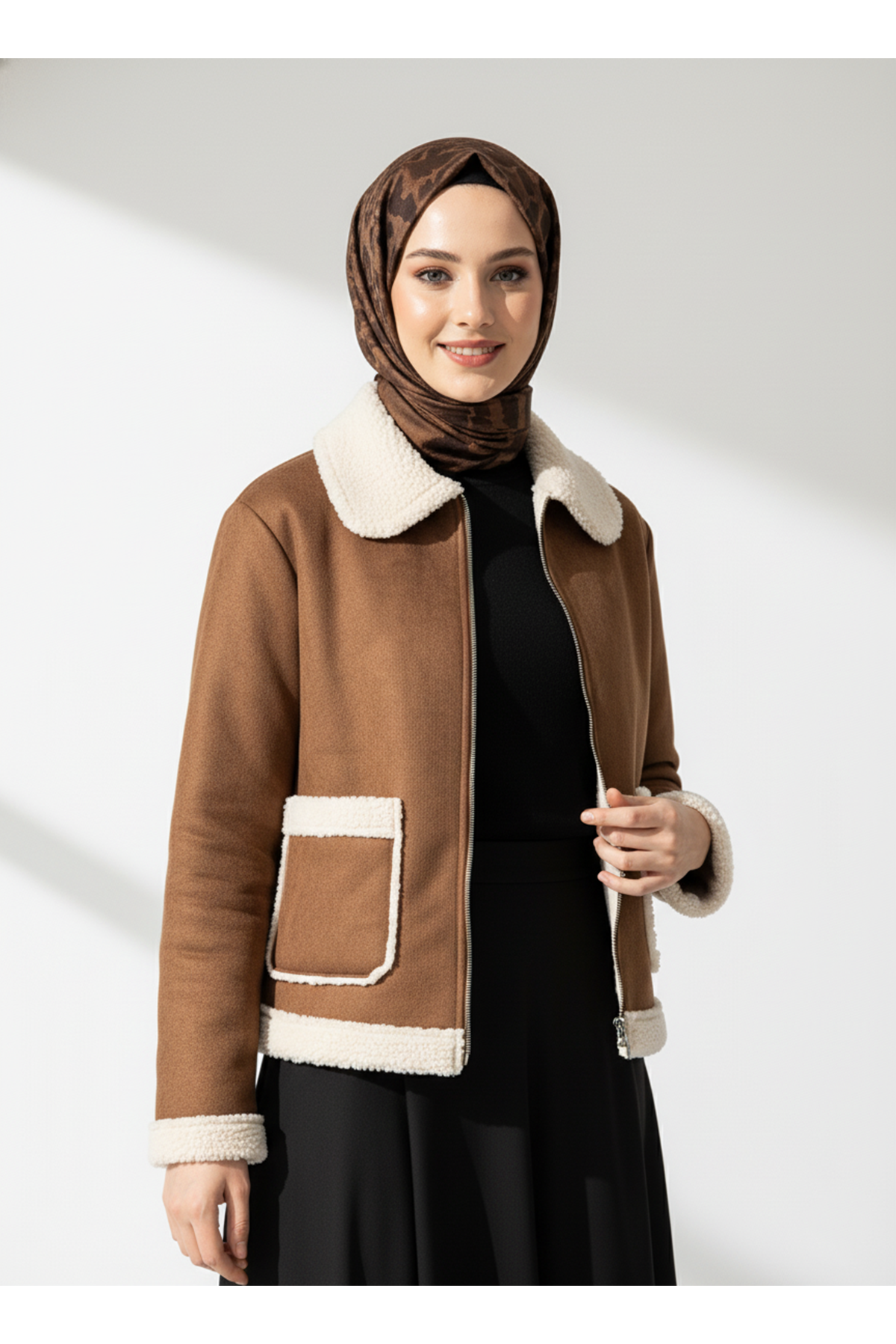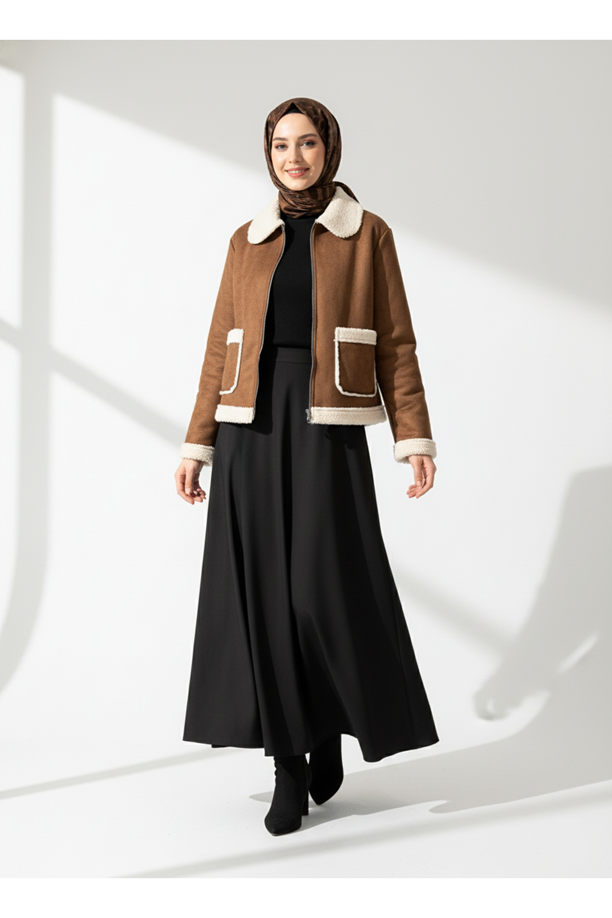 Metal Fermuar Detaylı Üstten Cepli Kaban-Taba