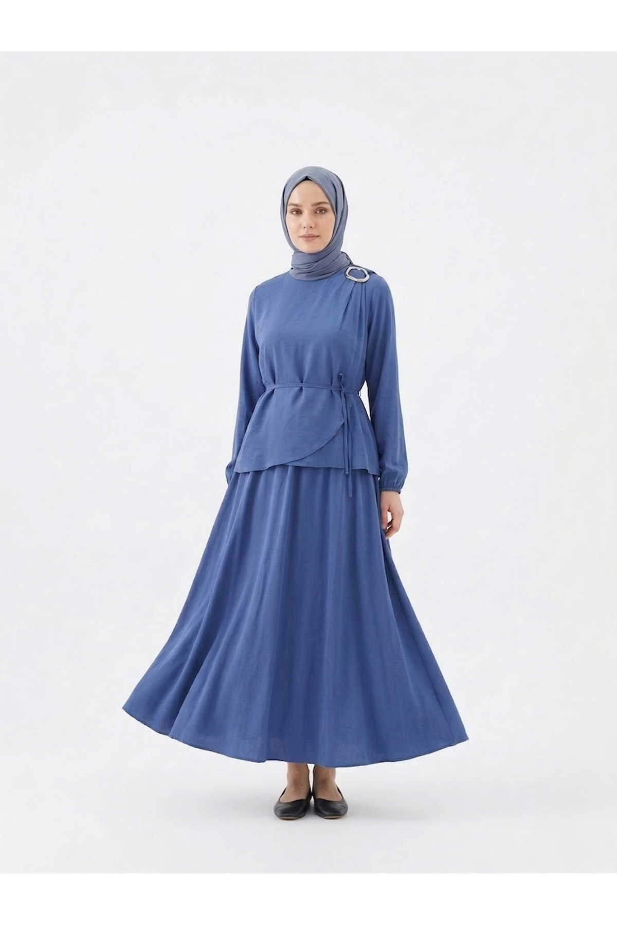 Omuz Aksesuar Pile Detay Etekli Takım-İndigo