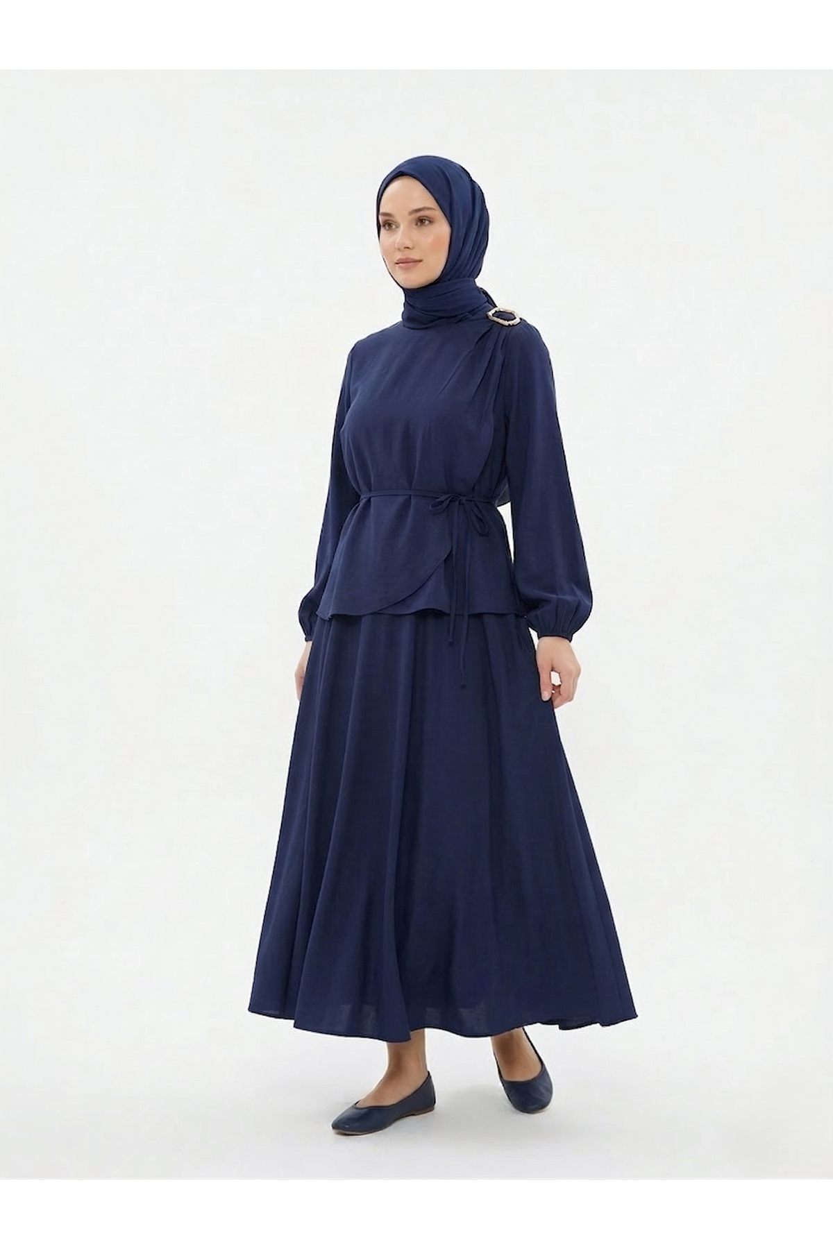 Omuz Aksesuar Pile Detay Etekli Takım-Lacivert