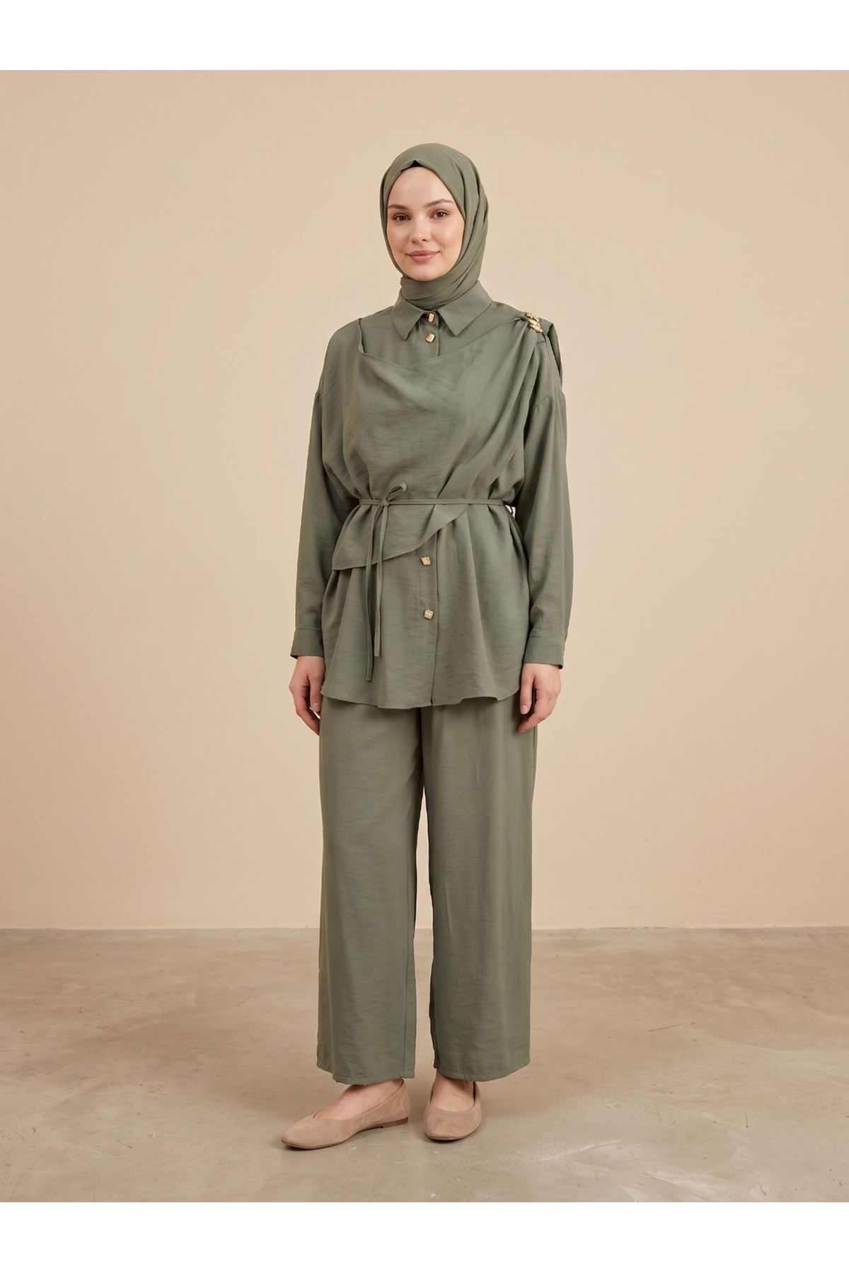 Omuz Toka Detay Aller Pantolonlu Takım-Haki