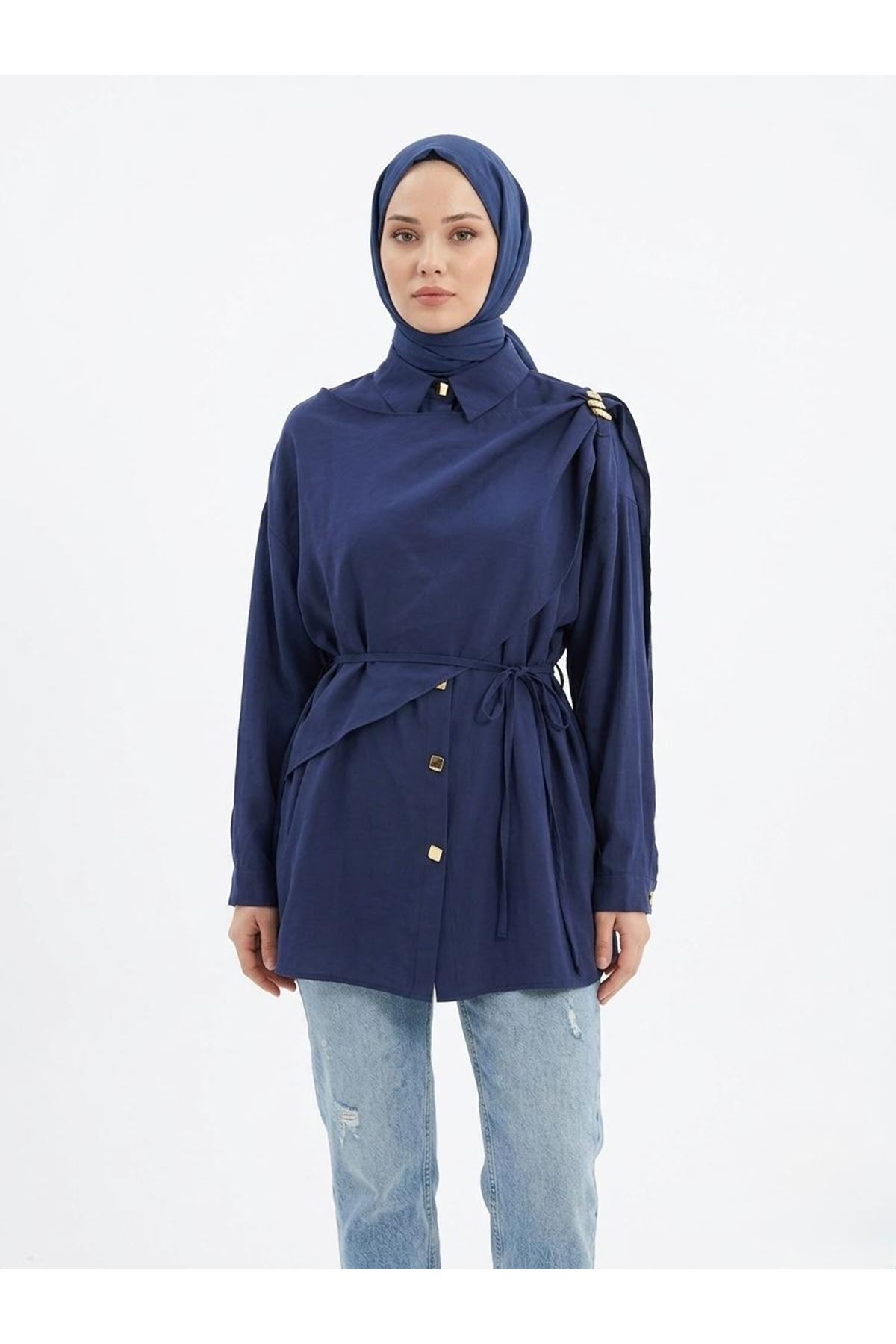 Omuz Toka Detay Aller Tunik-Lacivert