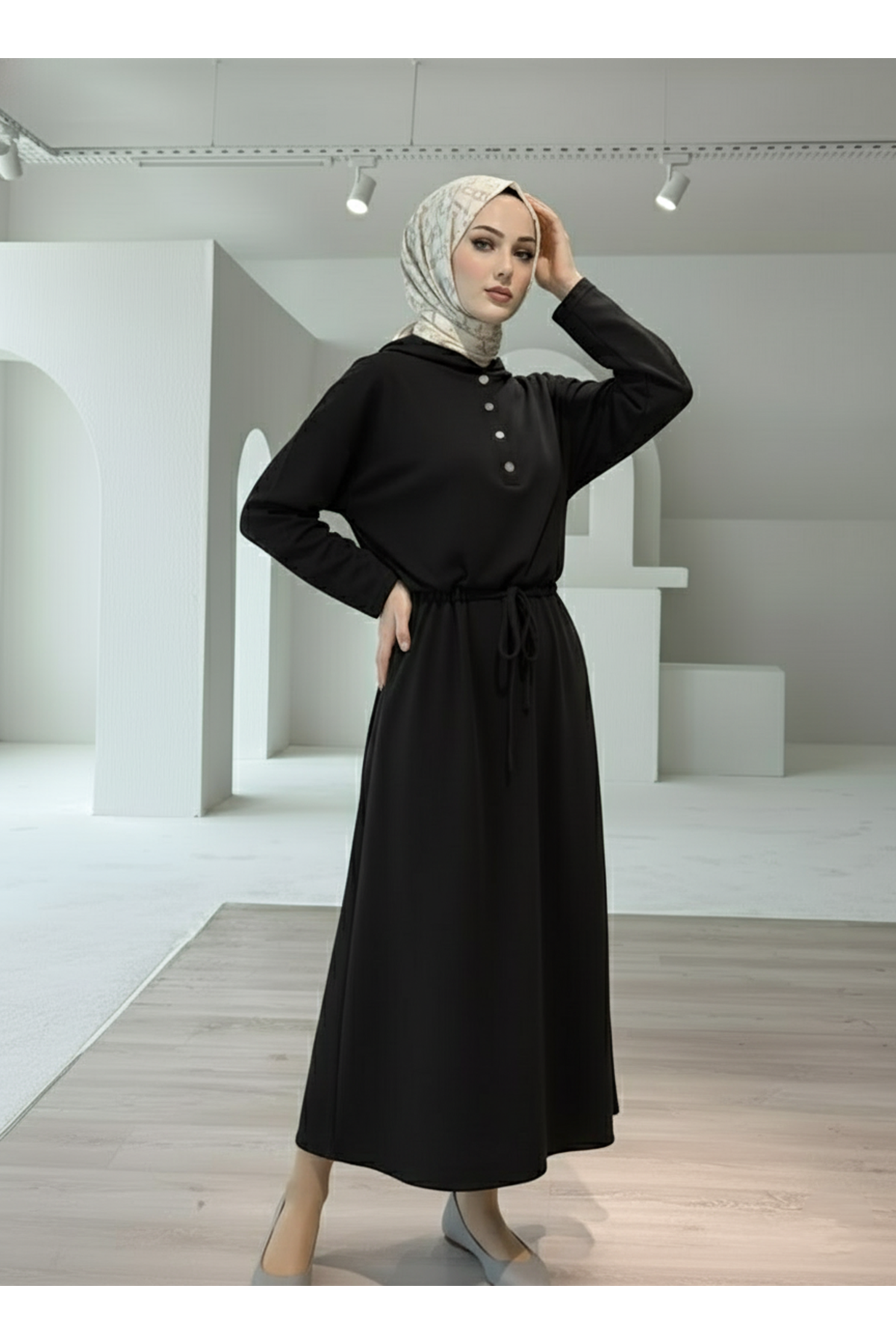 Ön Bağcıklı İkili Elbise-Siyah