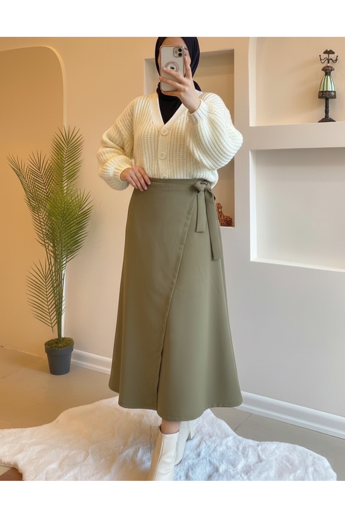 Ön Kapak Detay Atlas Etek-Açık Haki