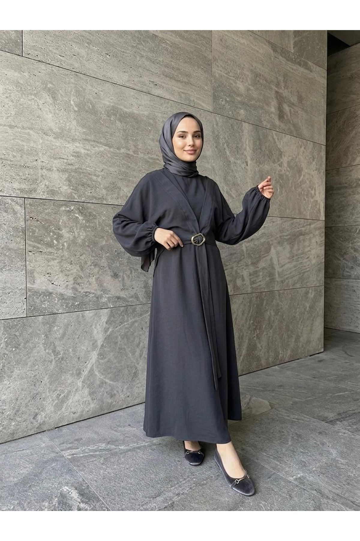 Önden Bağlamalı Aksesuar Detay İkili Elbise