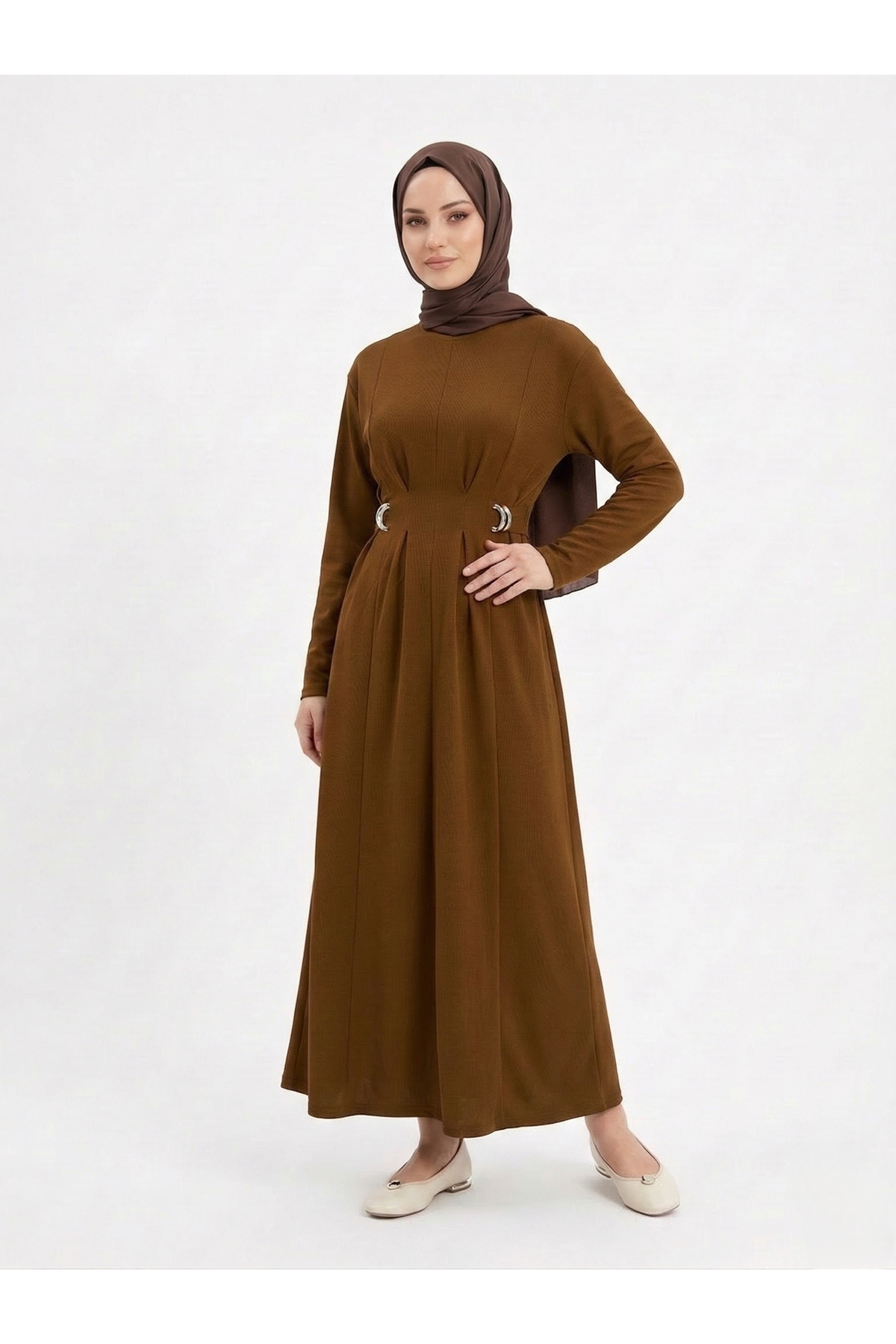 Önü Pensli Kuşak Aksesuar Detay Elbise