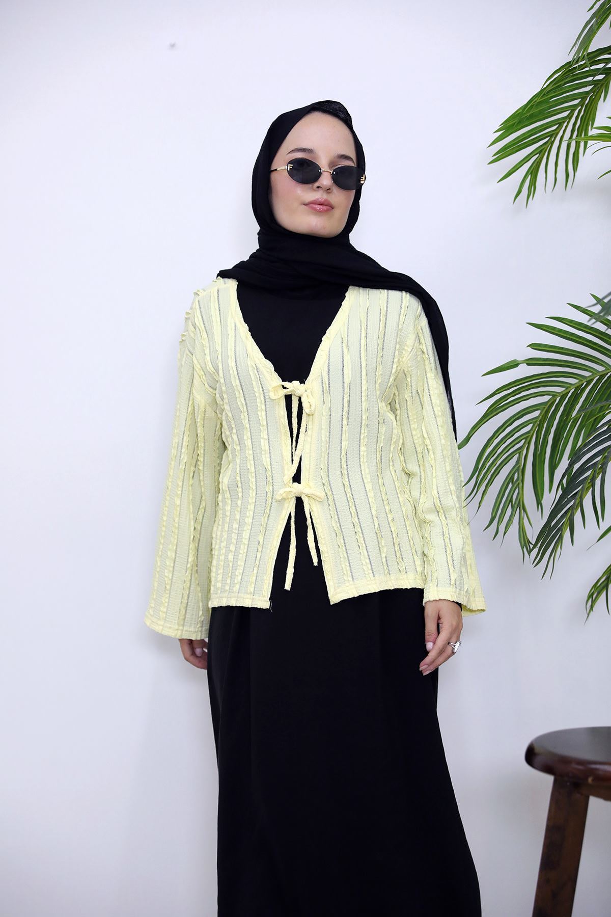 Pileli Ön İki Bağlamalı Tunik-Sarı