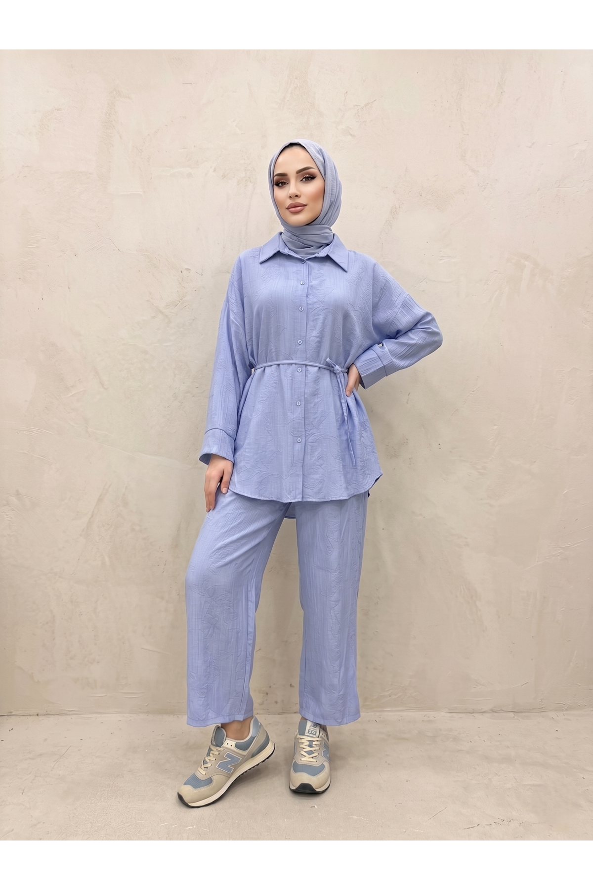 Takma Manşet Pantolonlu Takım-Mavi