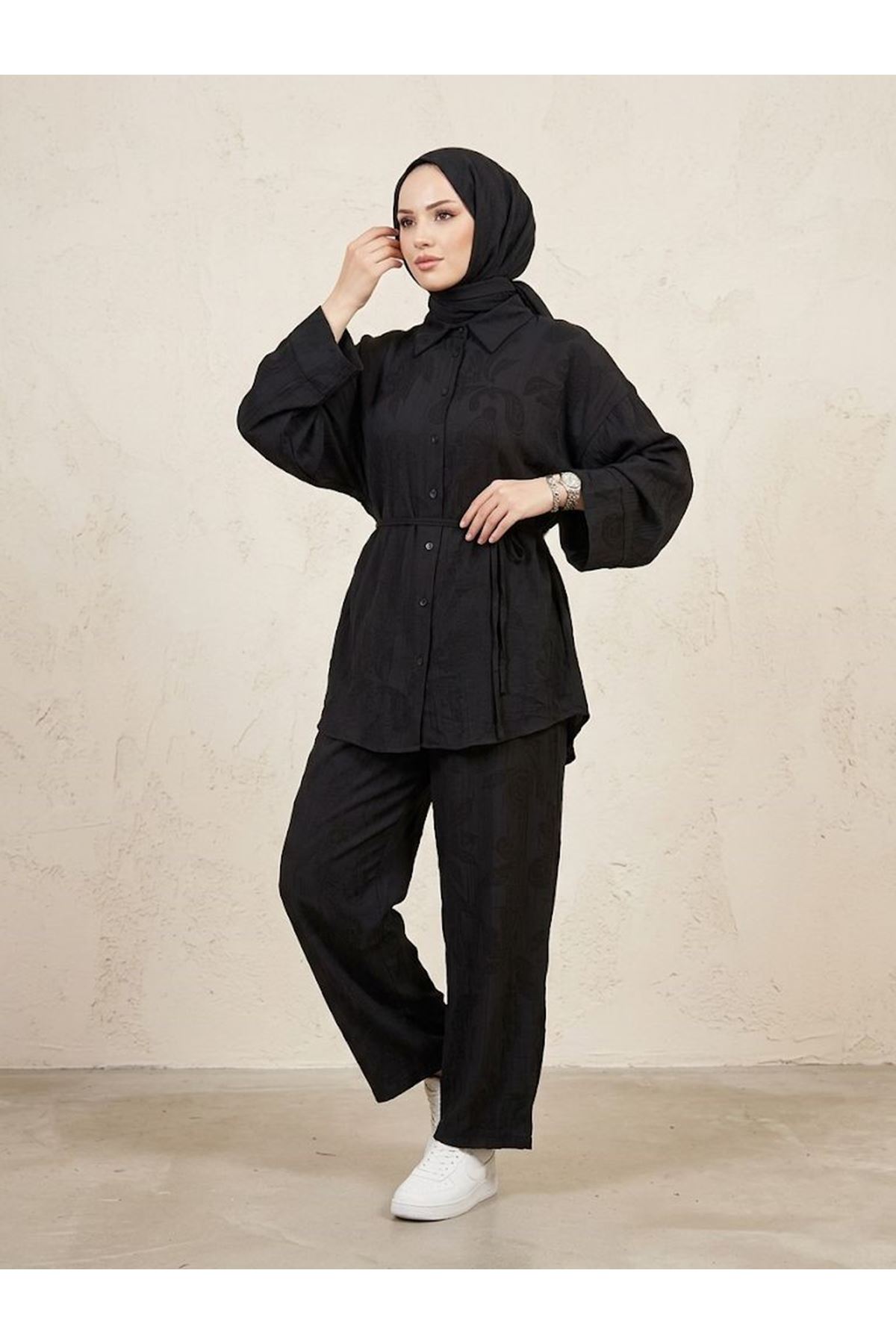 Takma Manşet Pantolonlu Takım-Siyah