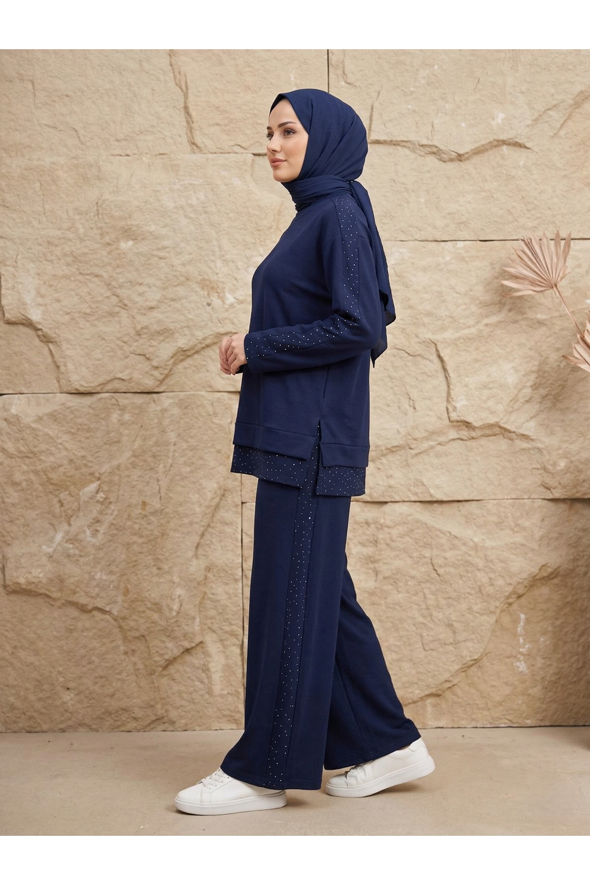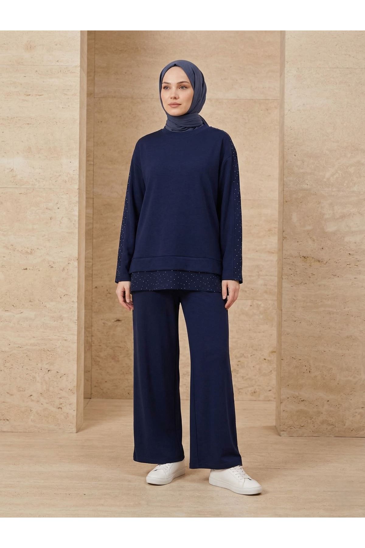 Taş Garnili Pantolonlu Takım-Lacivert