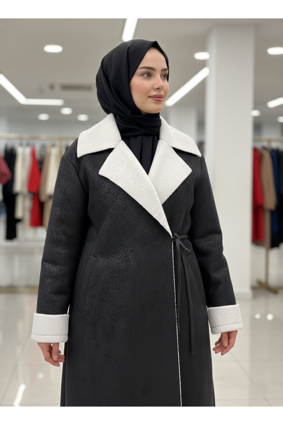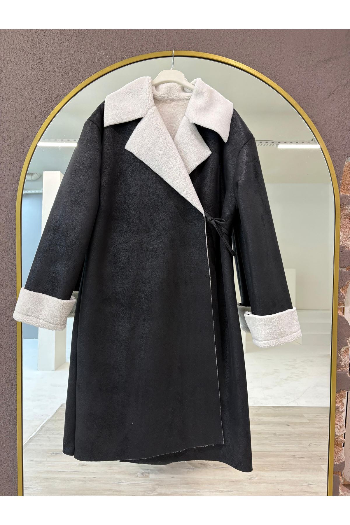 Uzun Boy Yan Bağlamalı Manşet Detaylı Kaban