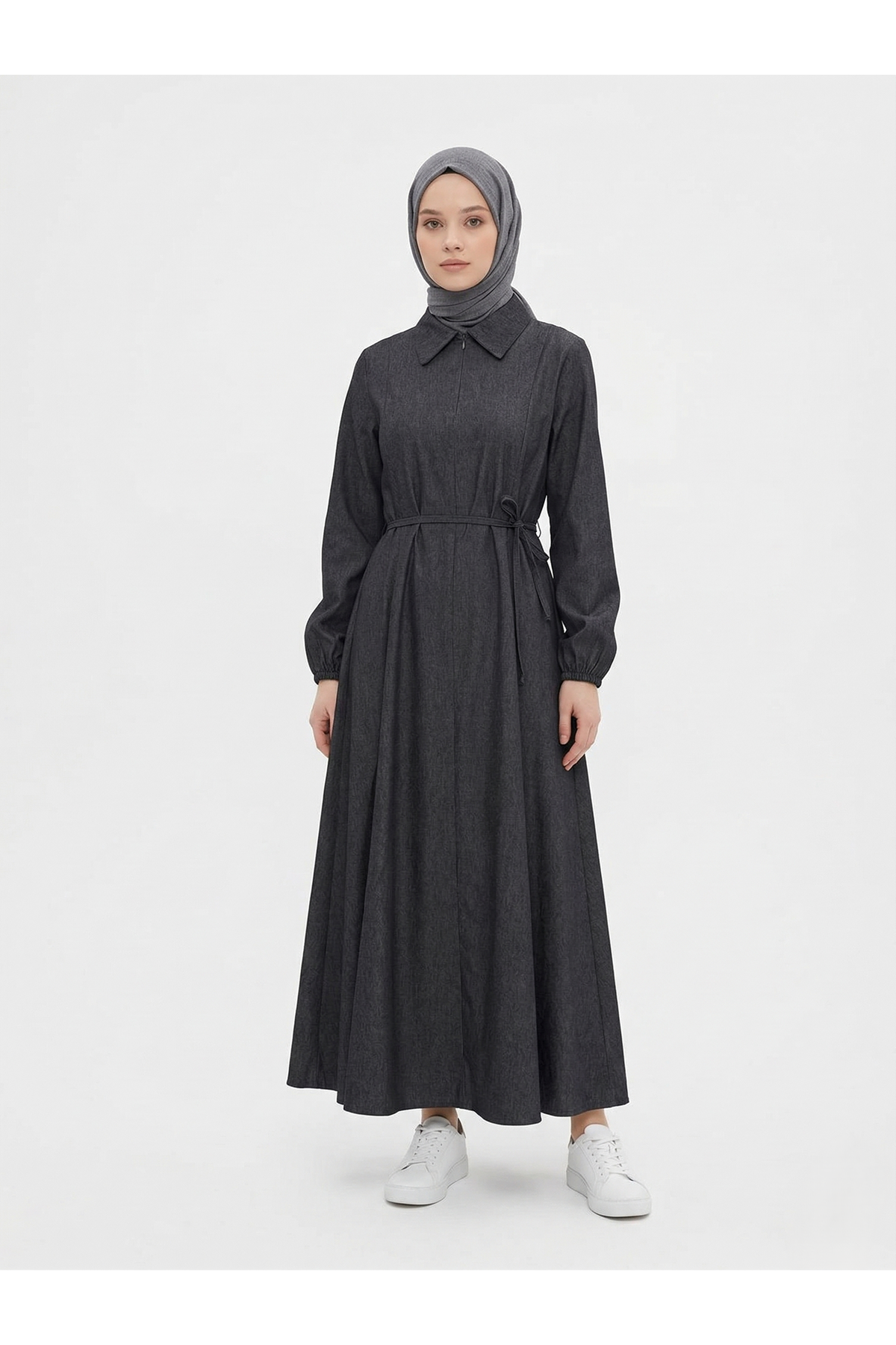 Yakalı Fermuar Detay Elbise