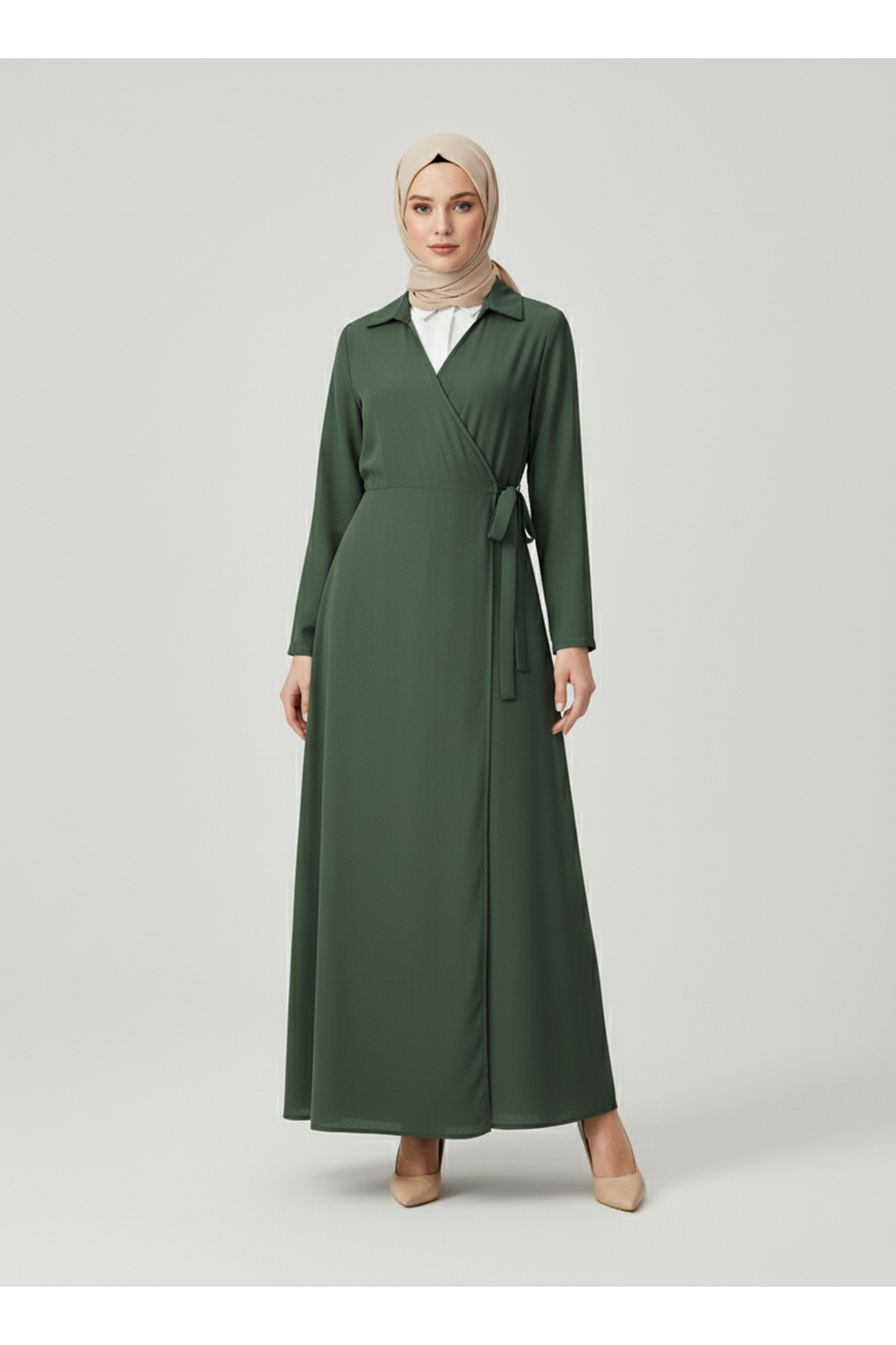 Yakalı Yandan Bağlamalı Elbise-Haki