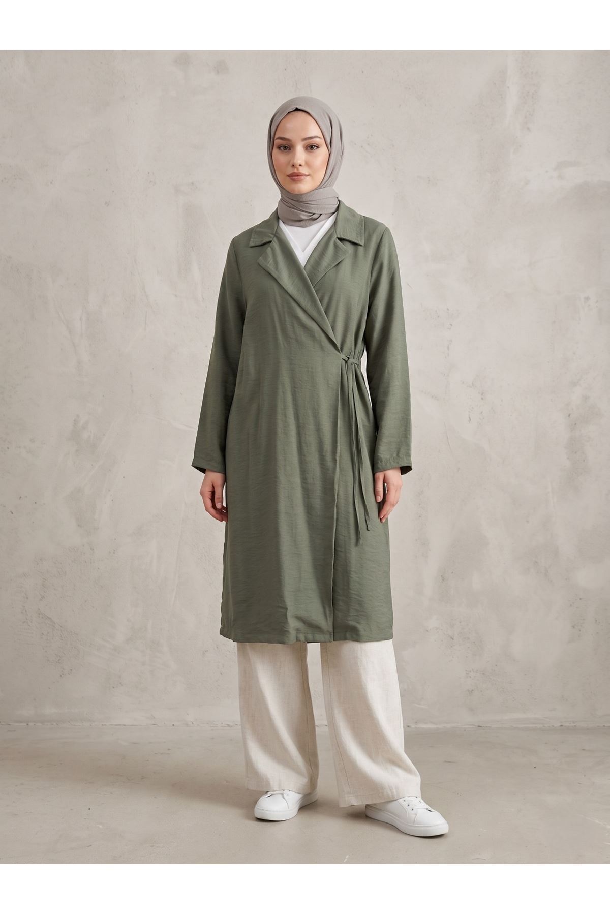 Yakalı Yandan Bağlamalı Kısa Ceket-Haki