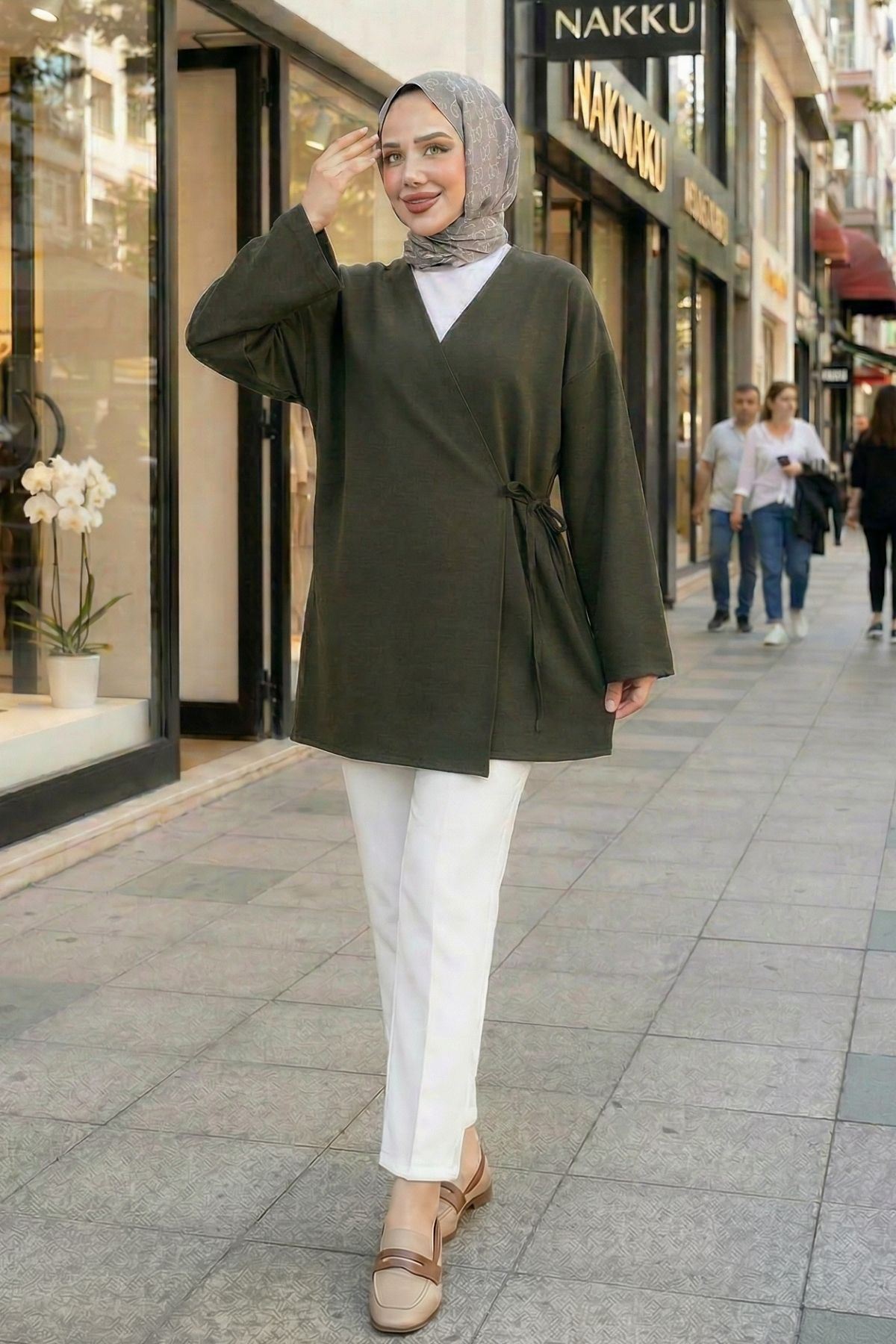 - Modern ve rahat tarzı bir araya getiren tesettür kimono tunik, günlük kombinlerden şık davet kombinlerine kadar geniş kullanım alanı sunar.