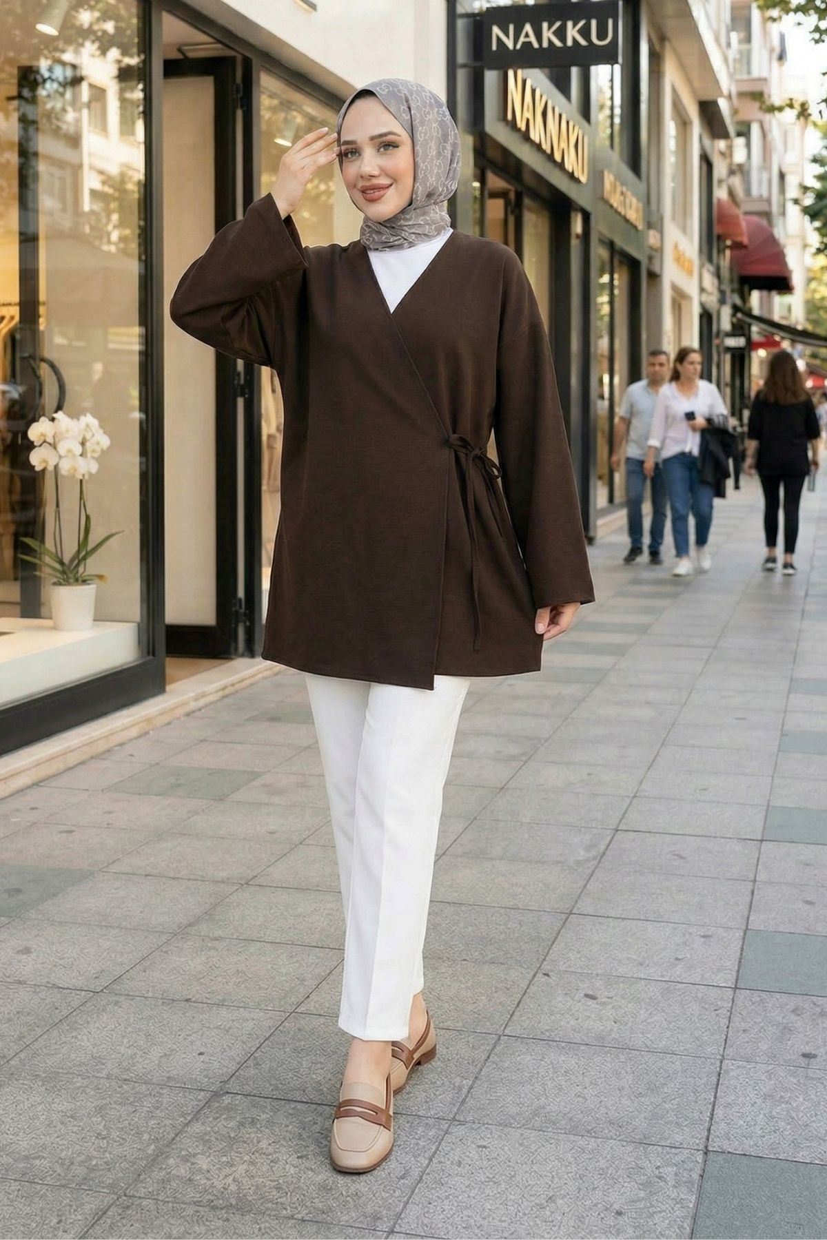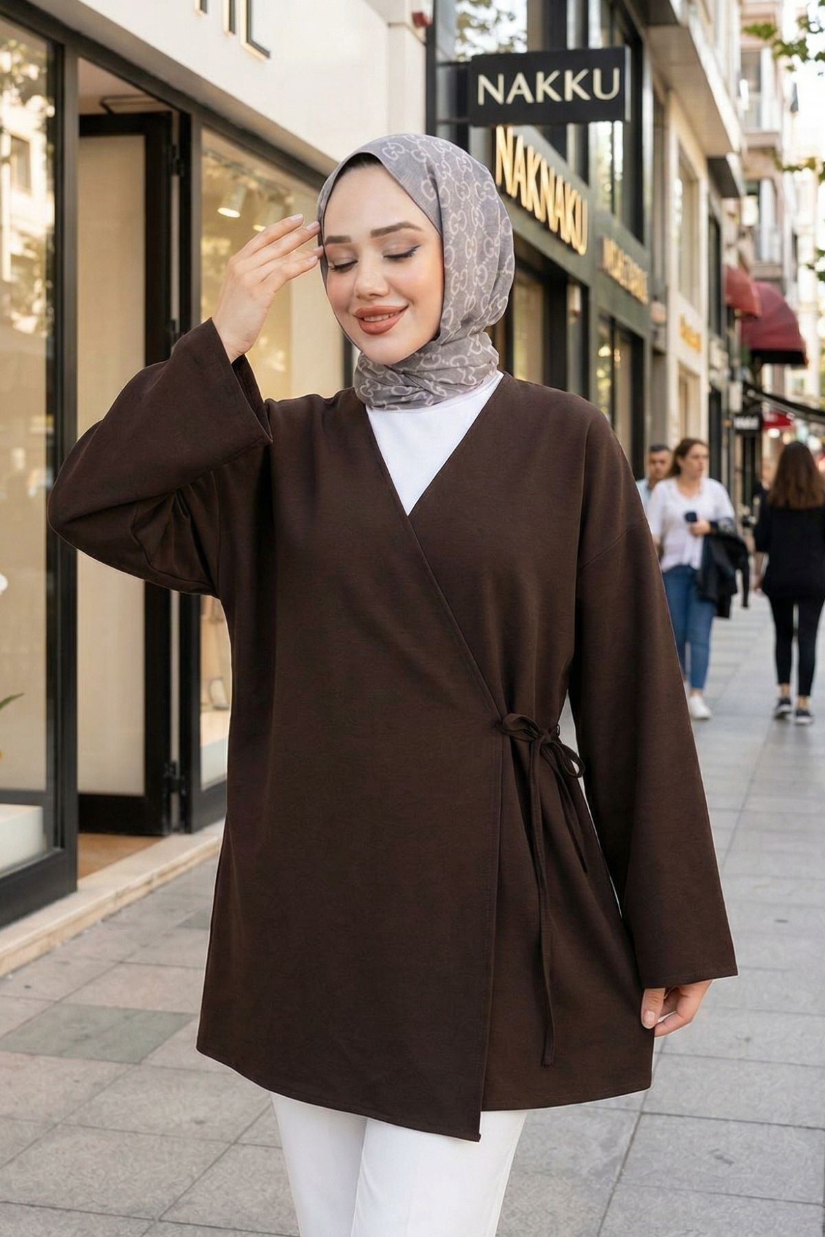 - Modern ve rahat tarzı bir araya getiren tesettür kimono tunik, günlük kombinlerden şık davet kombinlerine kadar geniş kullanım alanı sunar.