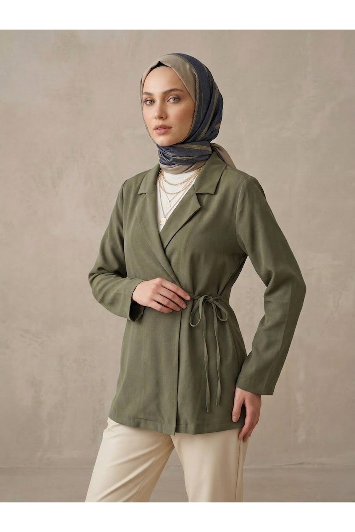 Yandan Bağlamalı Ceket-Haki