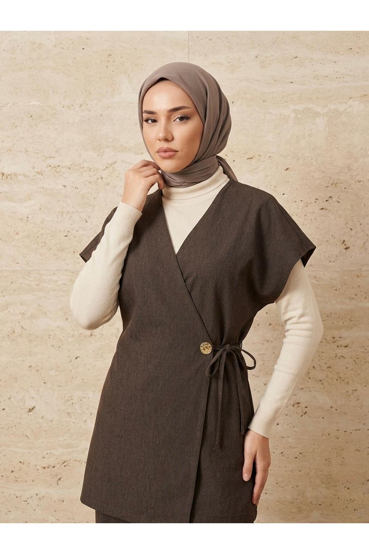 Yandan Bağlamalı Düğme Detay Yelek-Kahve