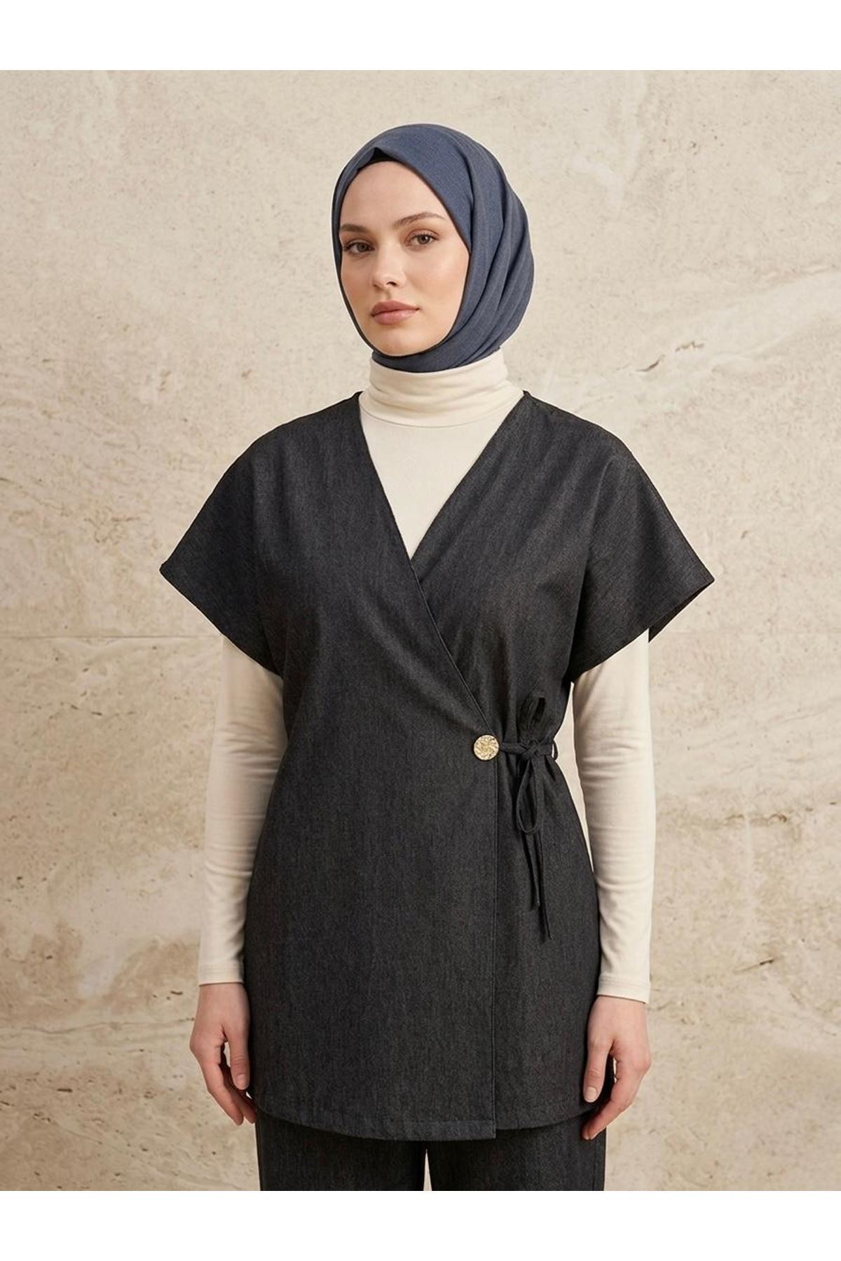 Yandan Bağlamalı Düğme Detay Yelek