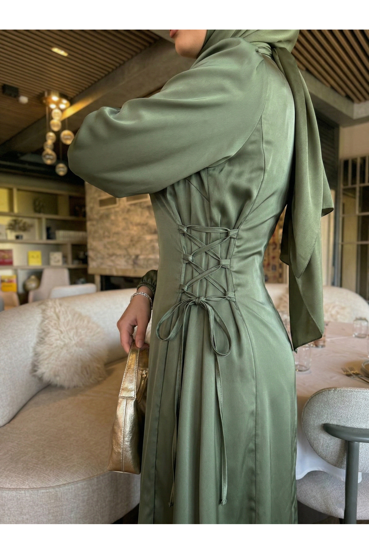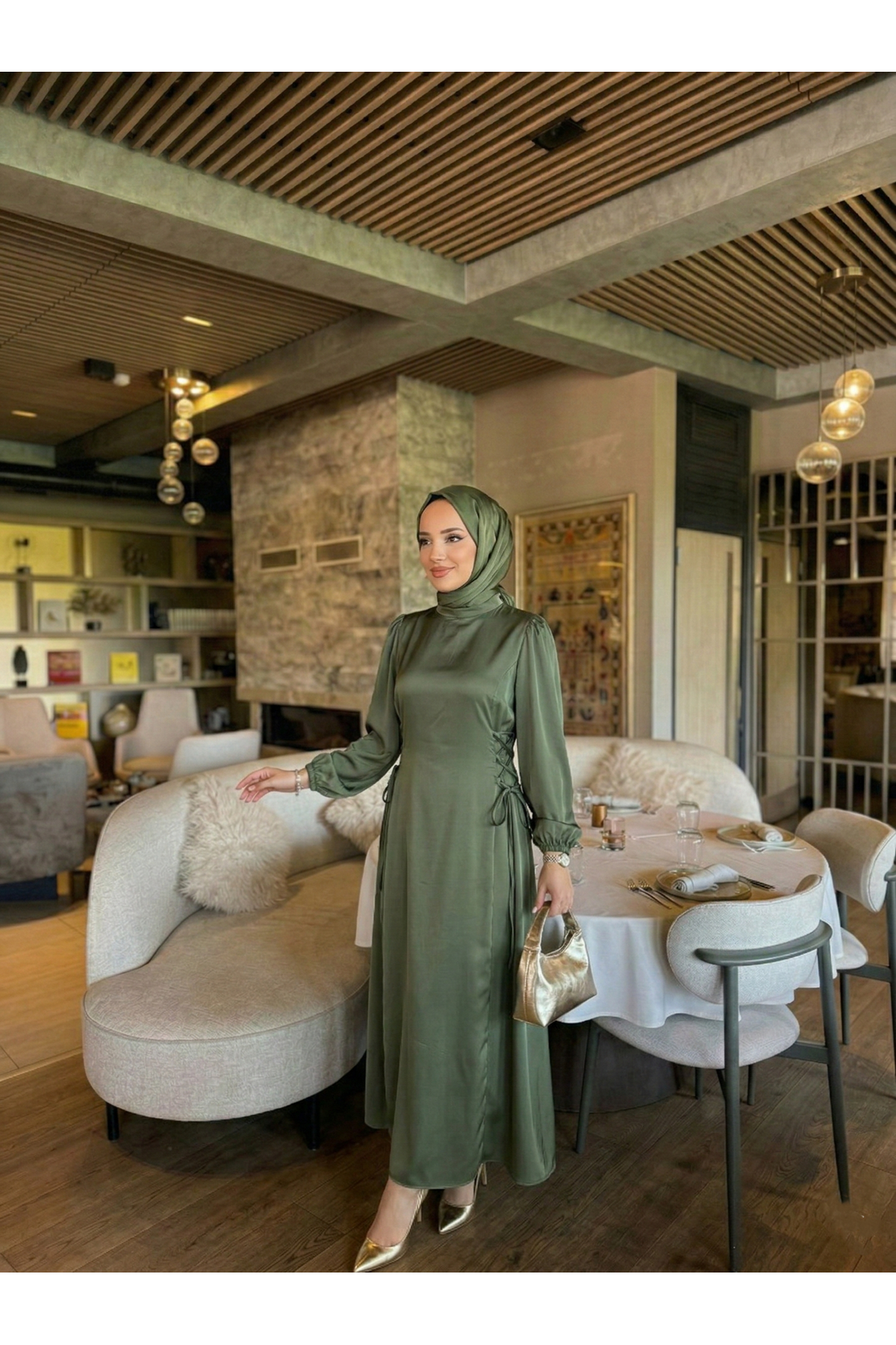 Yanlar Birit Bağlamalı Elbise-Haki
