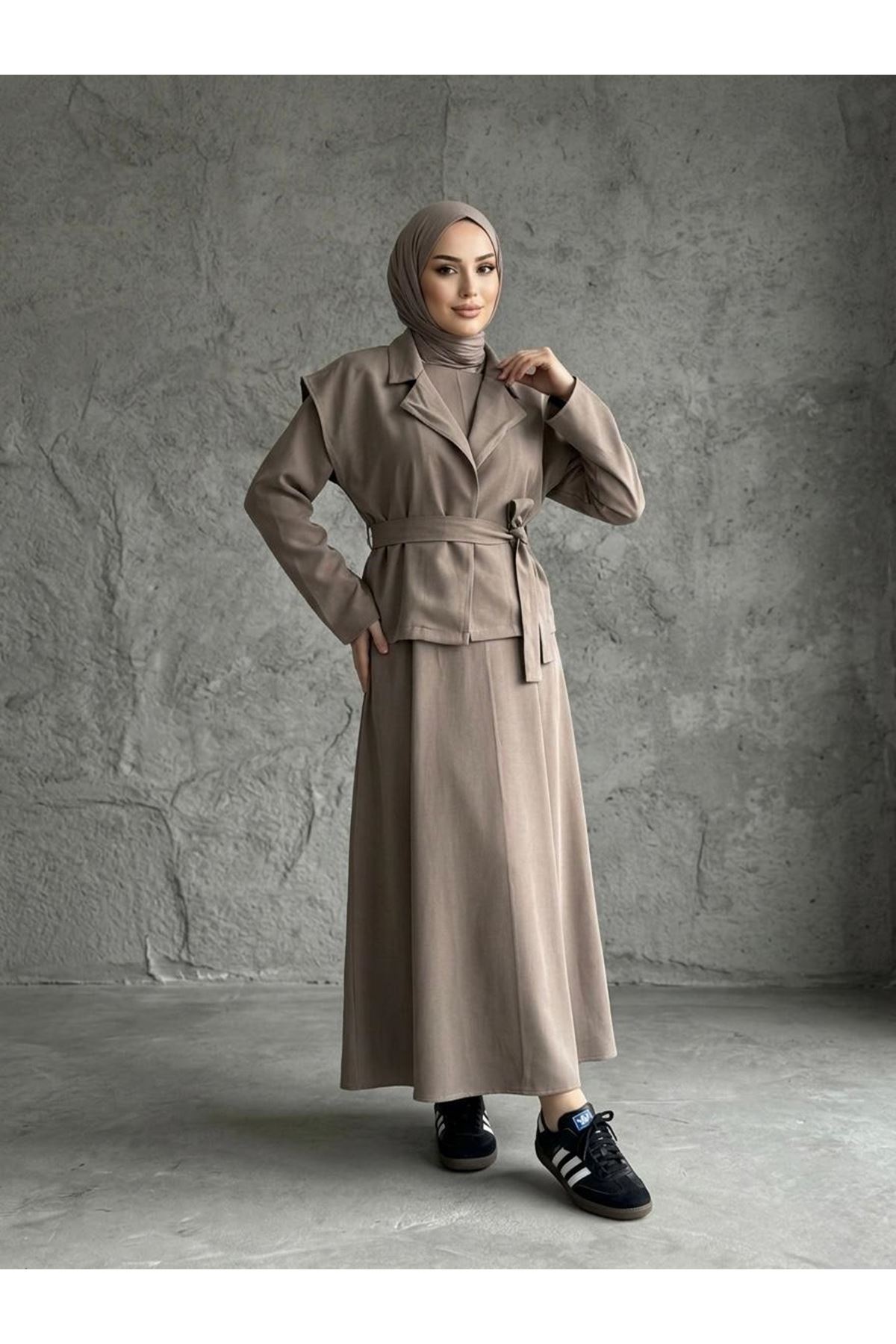 Yelekli İkili Elbise-Duman