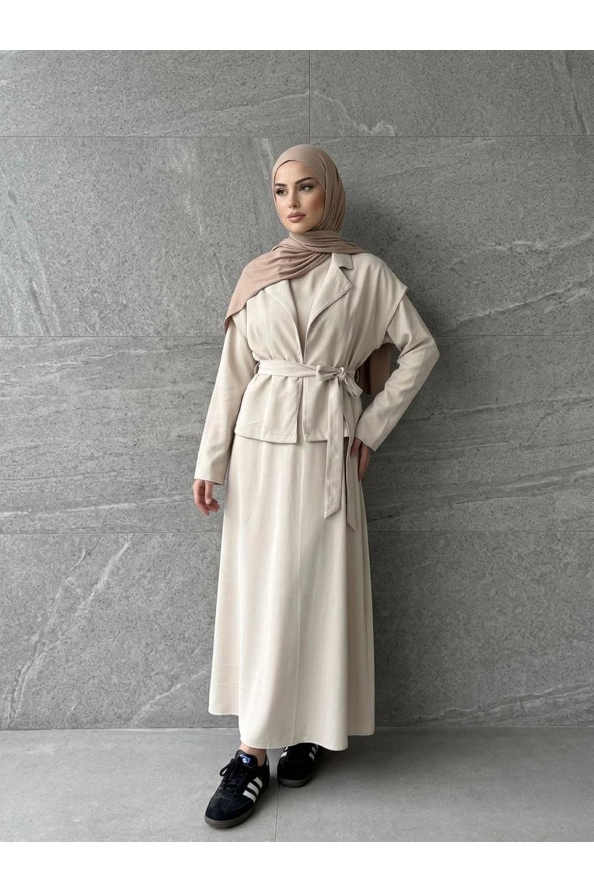 Yelekli İkili Elbise-Taş