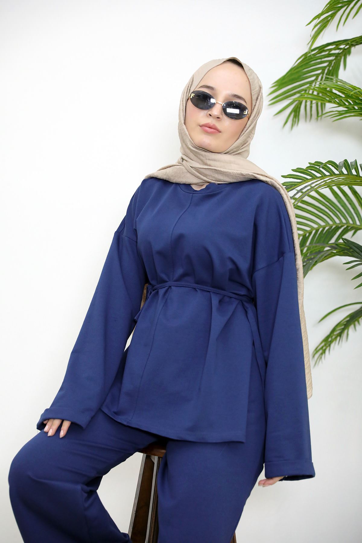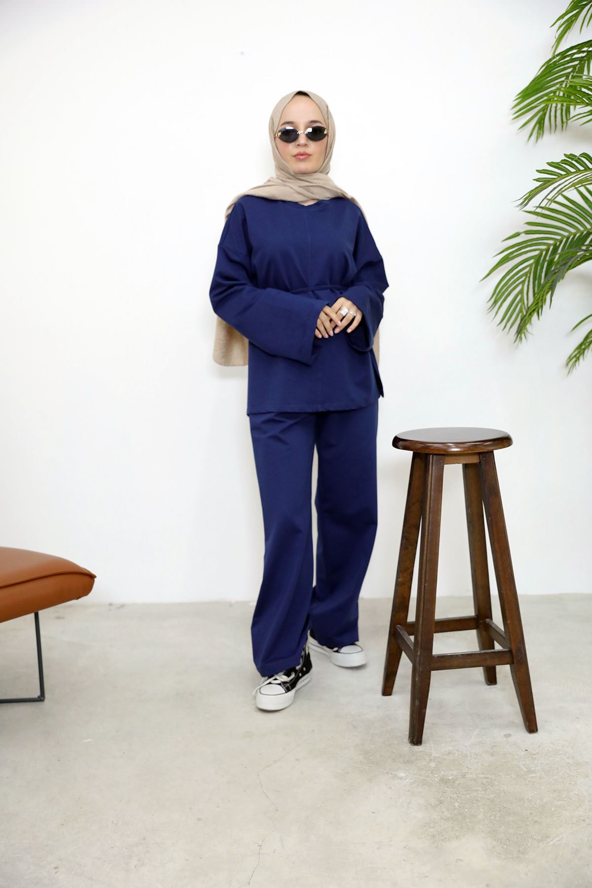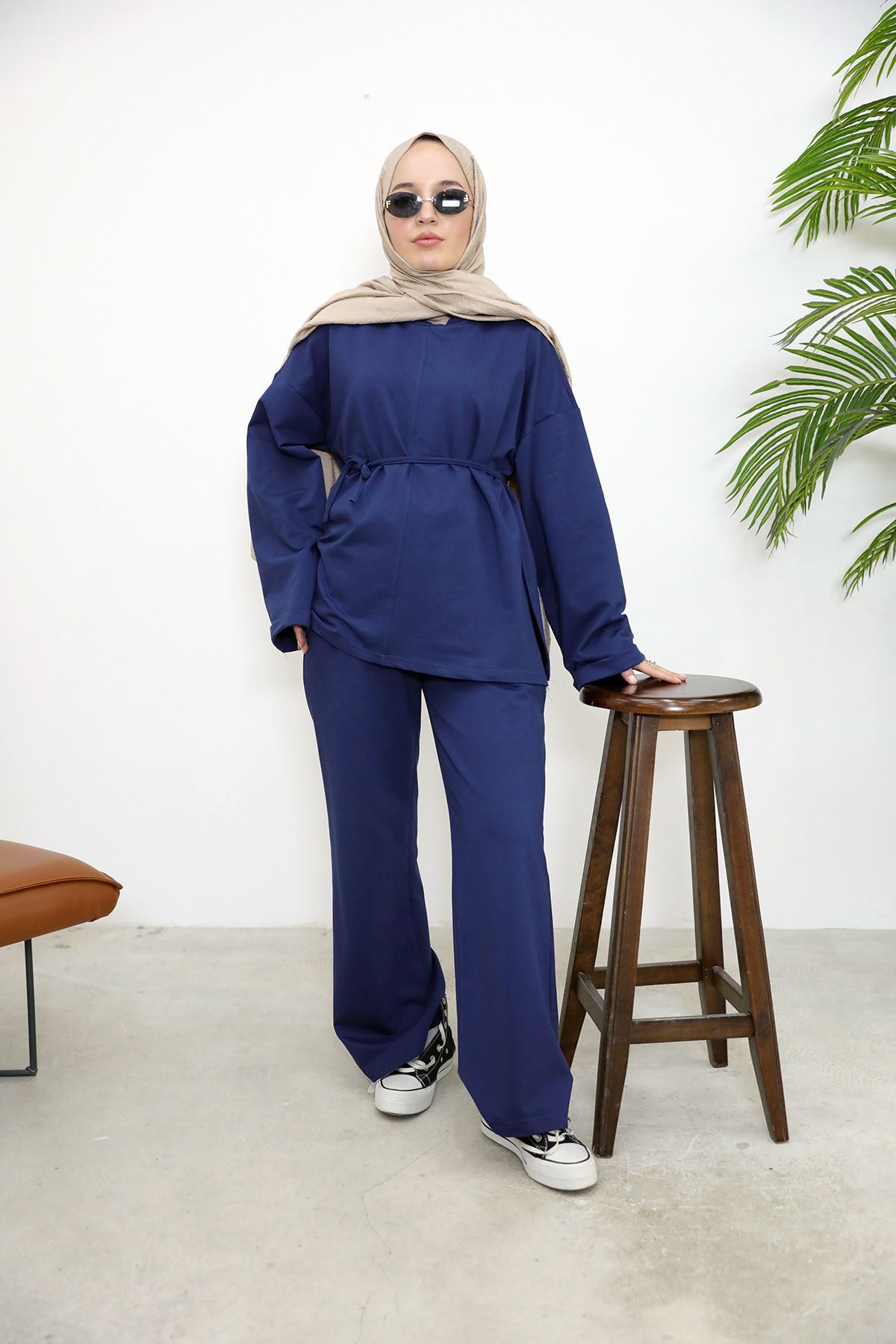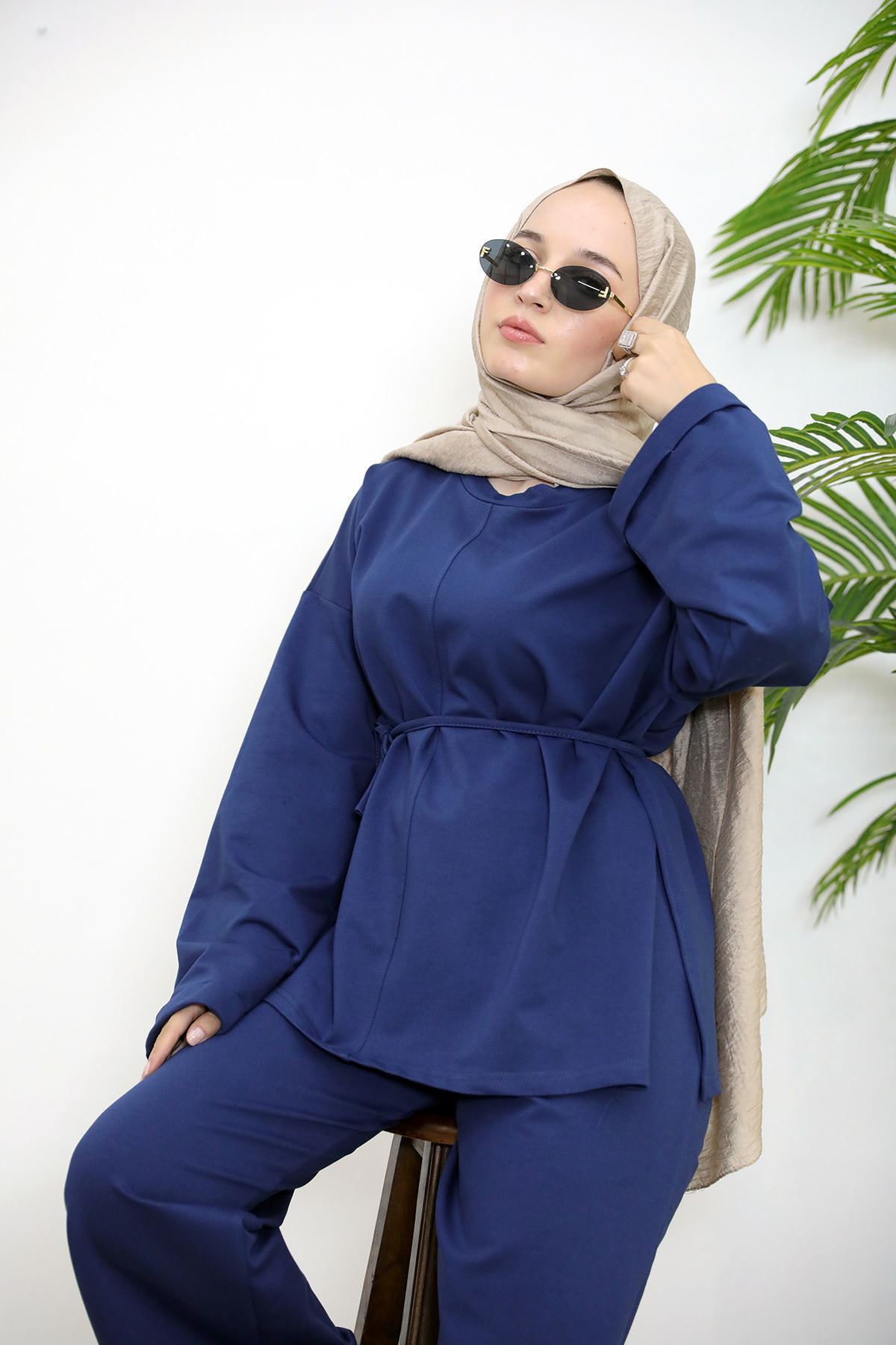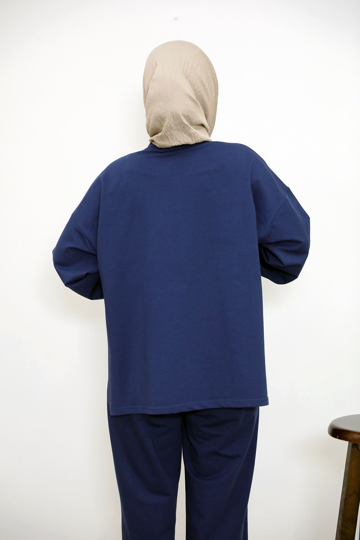 Yırtmaçlı İki İplik Pantolonlu Takım-Lacivert